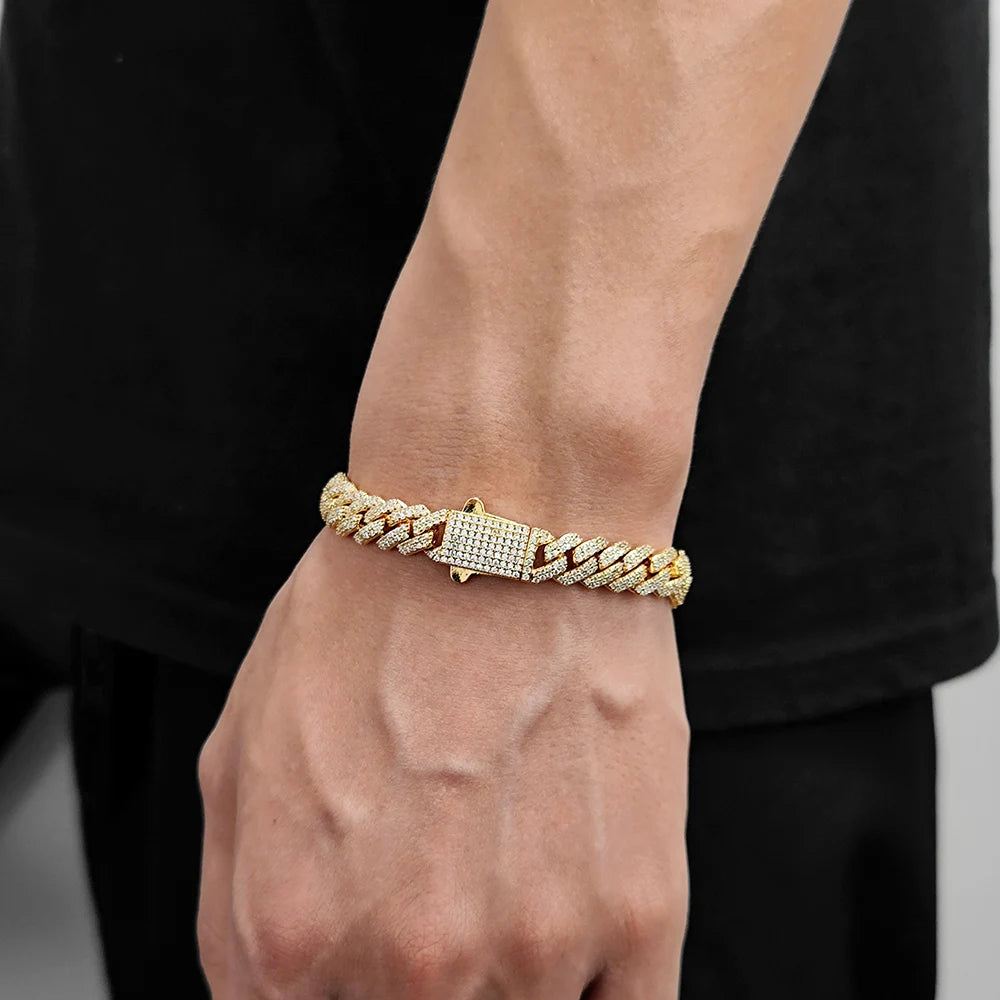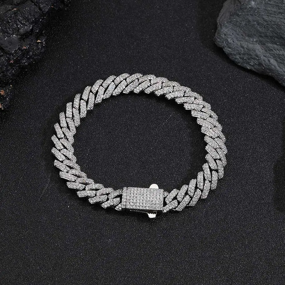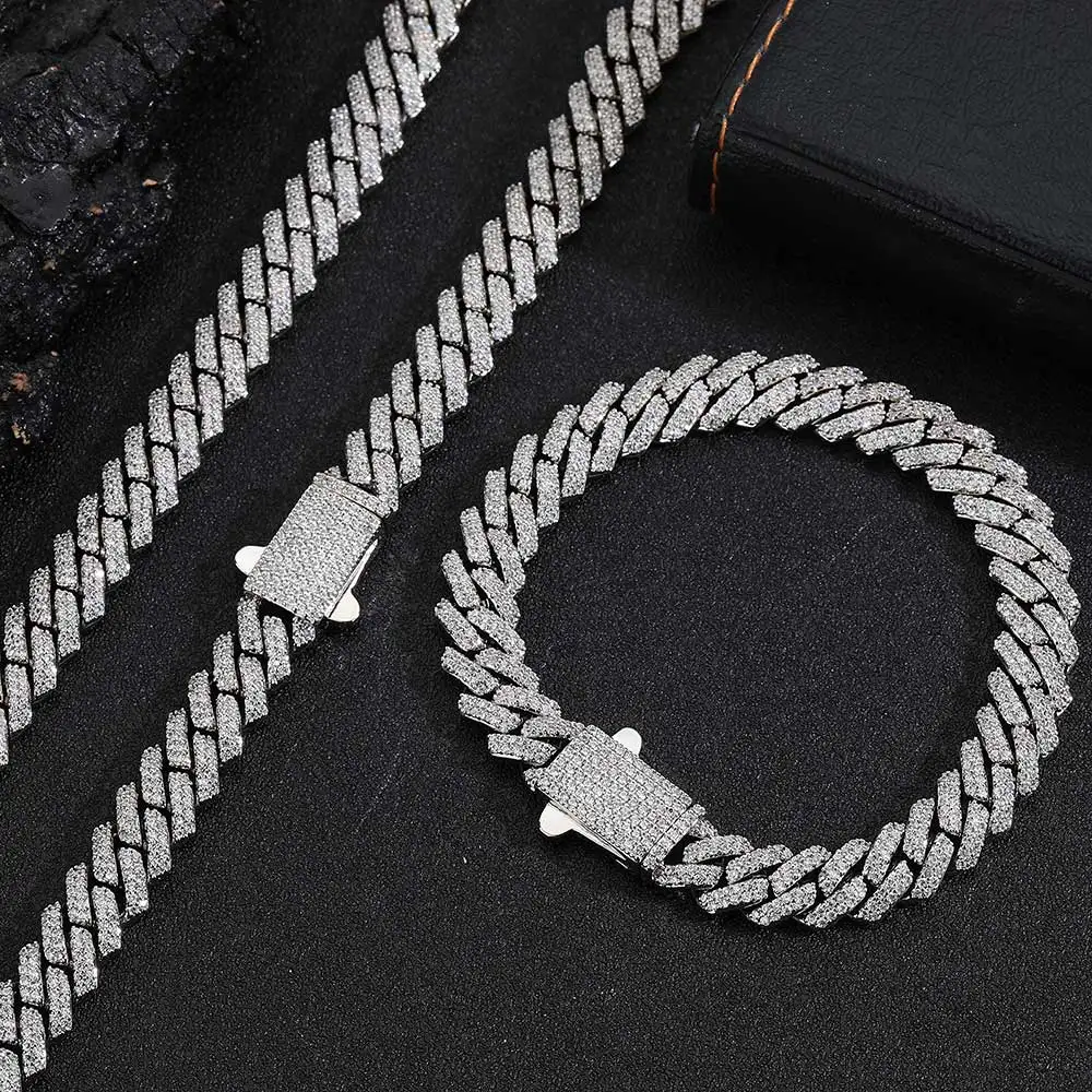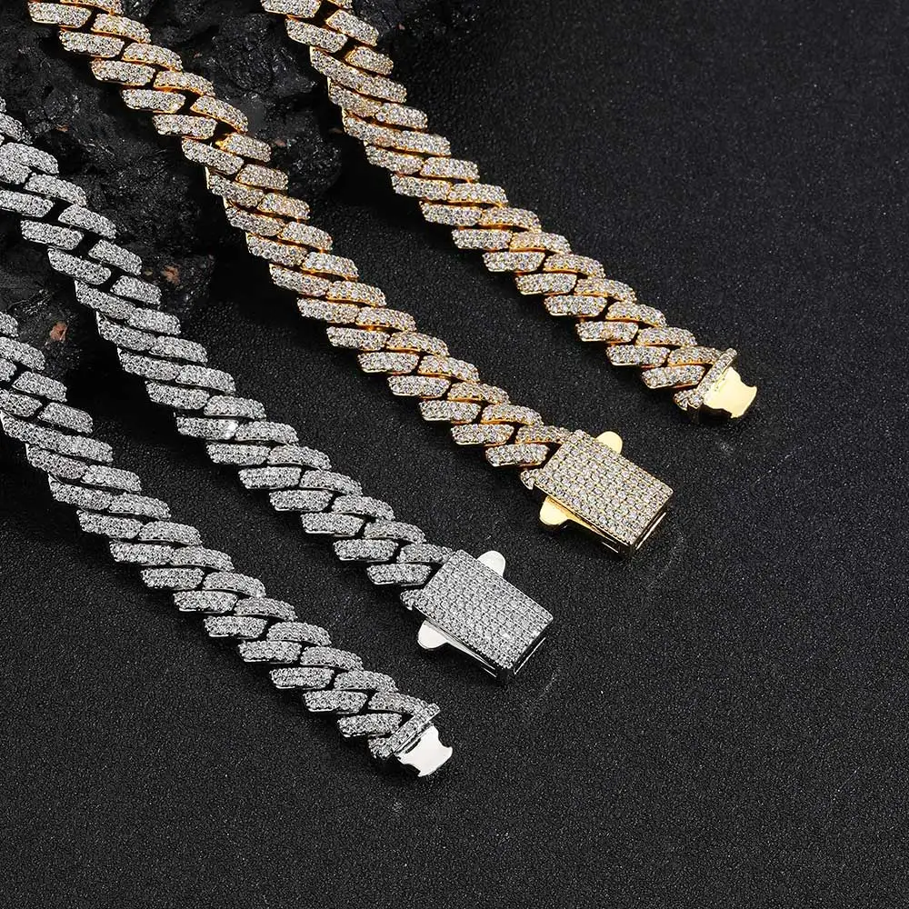 Wholesale 8Mm Hip Hop Jewelry 2 Rows Thin Cuban Link Chains Cubic Zirconia Iced Out Argenteous For Girl Cuban Necklaces Men