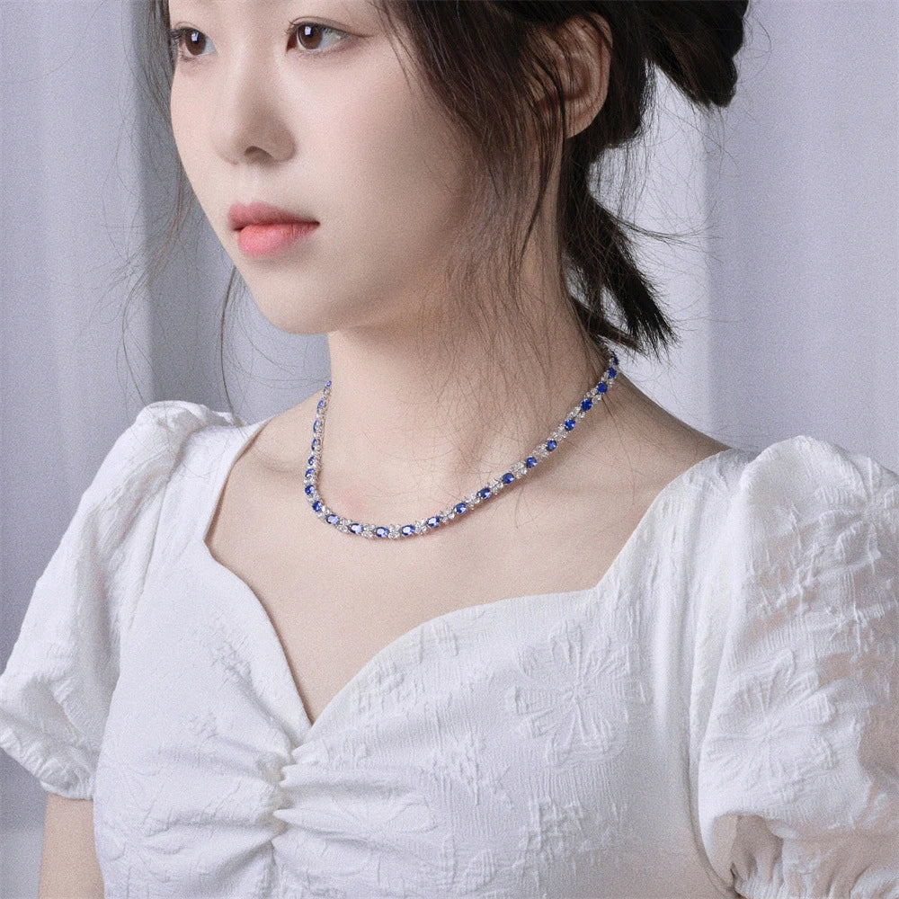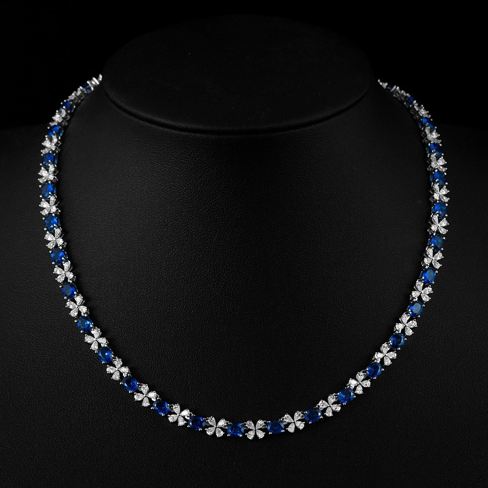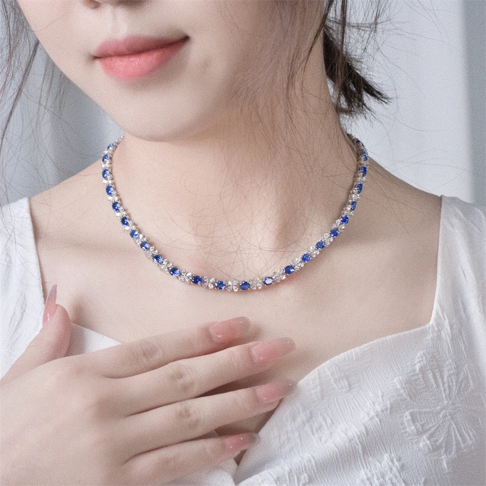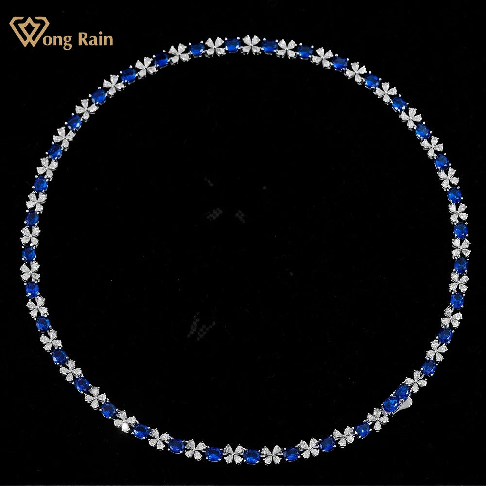 Wong Rain 925 Sterling Silver 4*5MM Sapphire Ruby High Carbon Diamond Gemstone Sparkling Necklace Fine Jewelry Anniversary Gifts