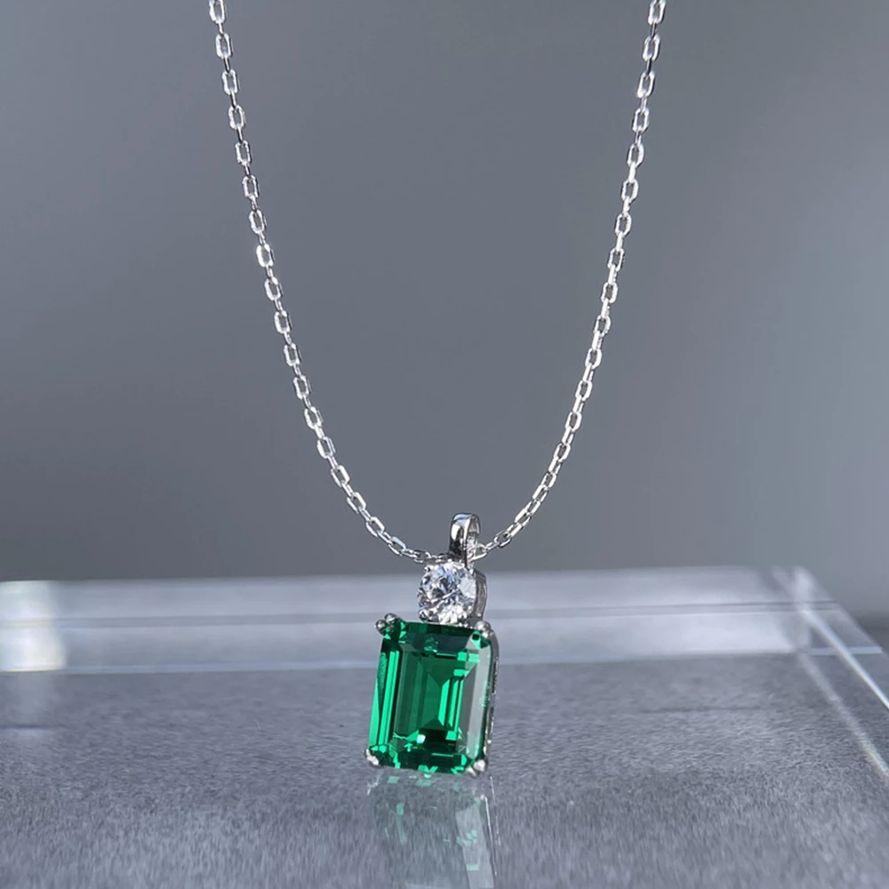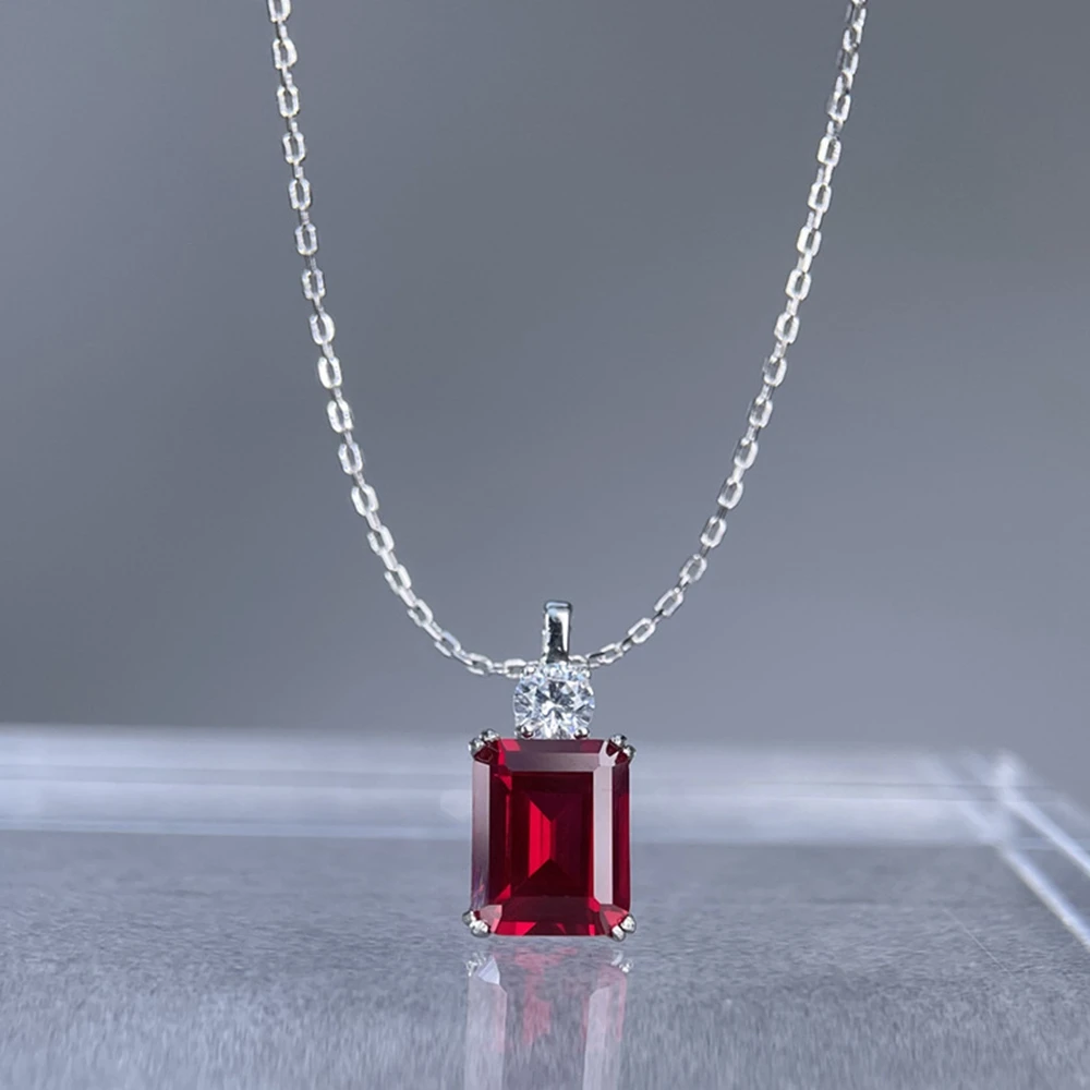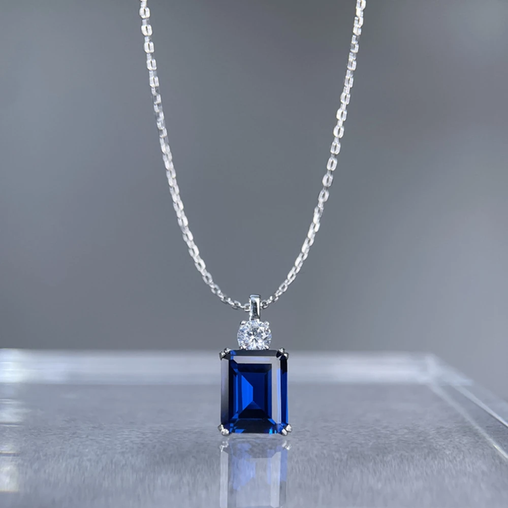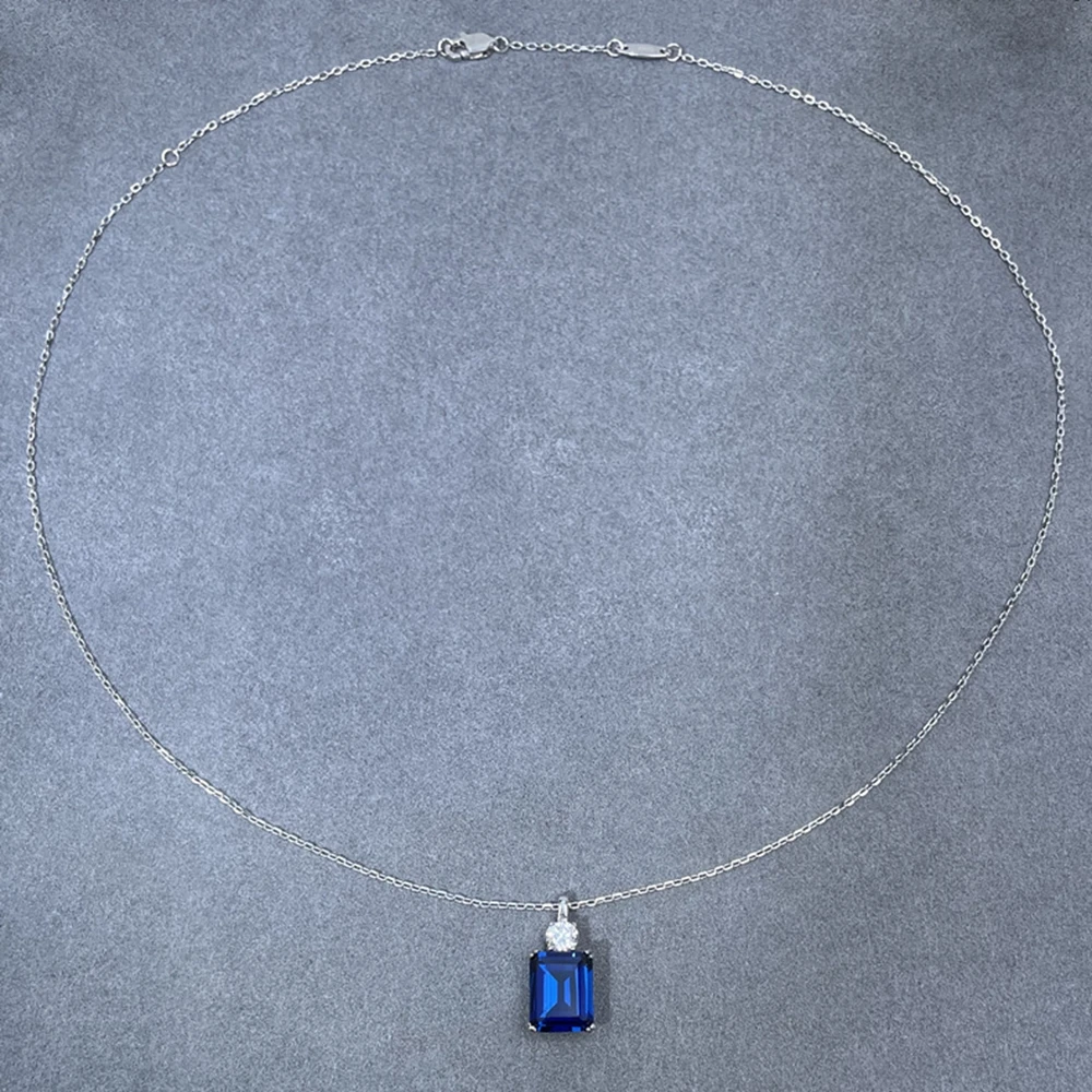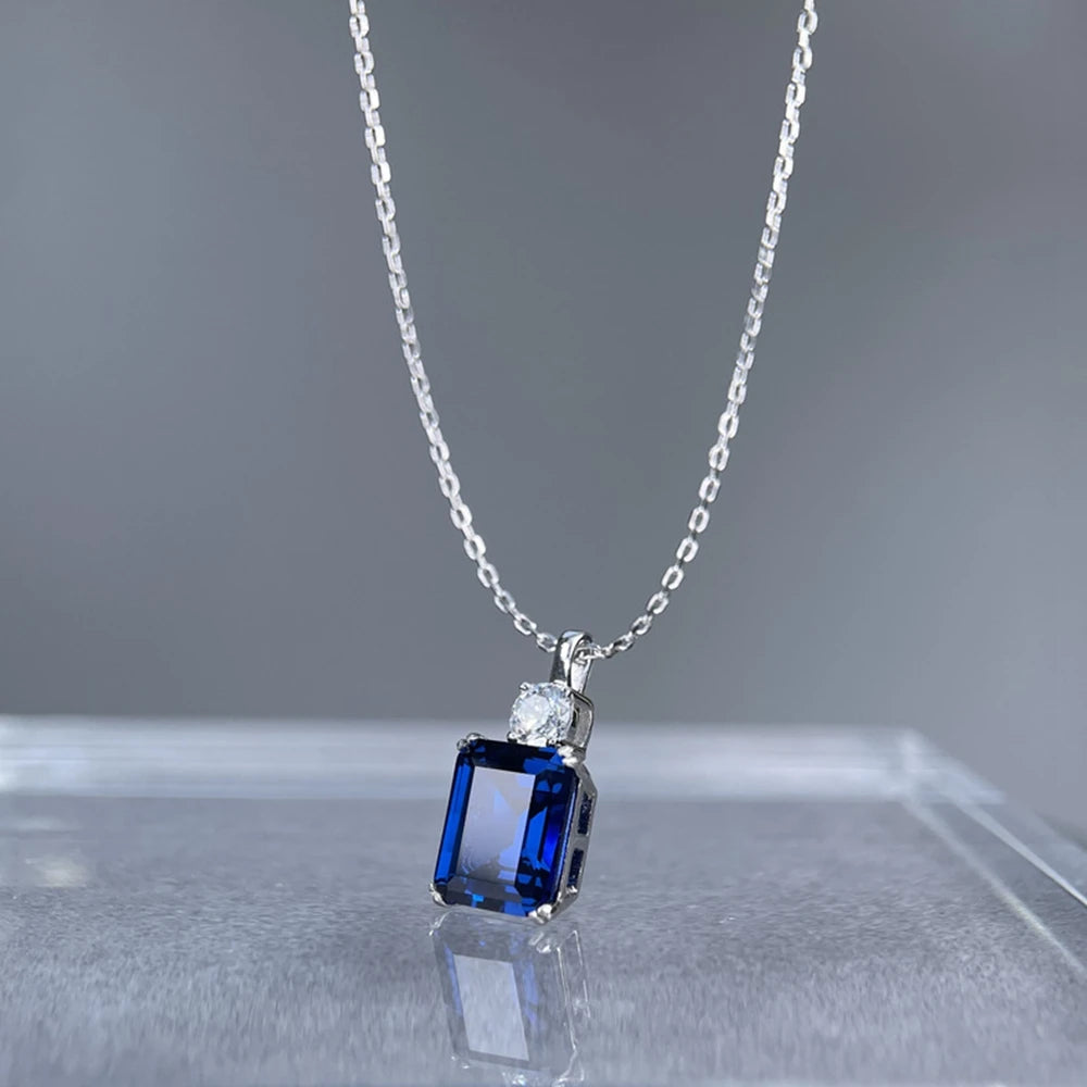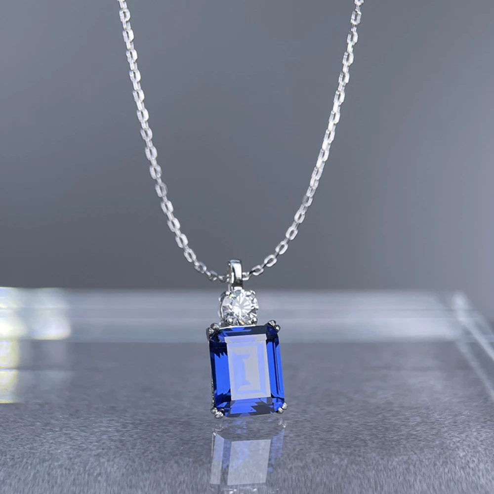 Wong Rain 925 Sterling Silver Emerald Cut 8*10 MM Tanzanite Sapphire Ruby Citrine Emerald High Carbon DiamondGems Pendant Necklace Fine Jewelry Wholesale