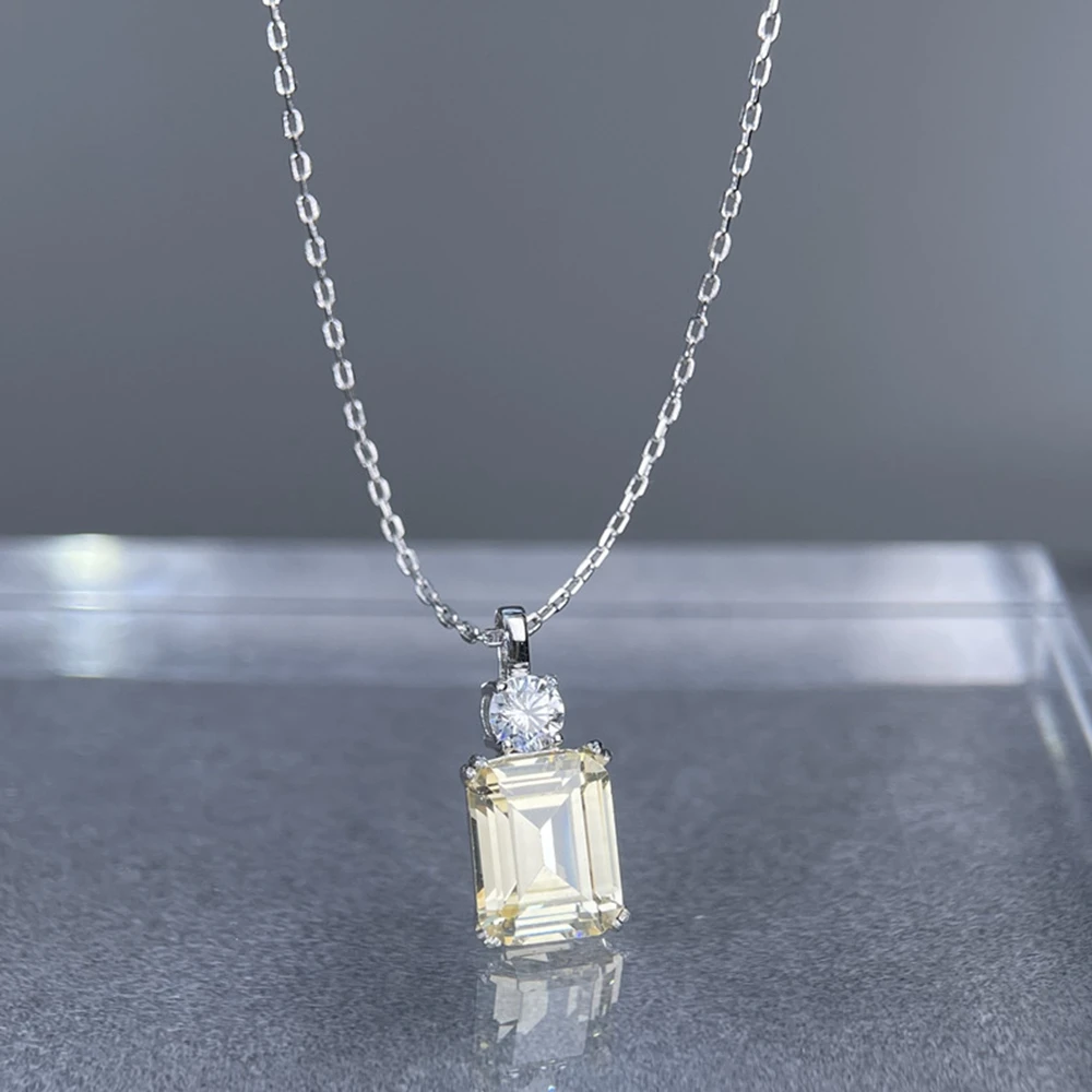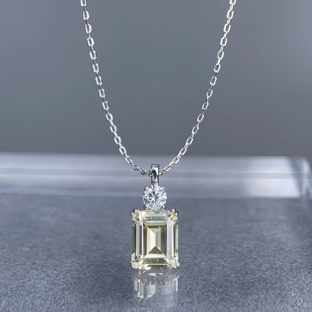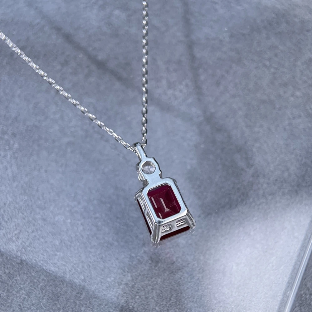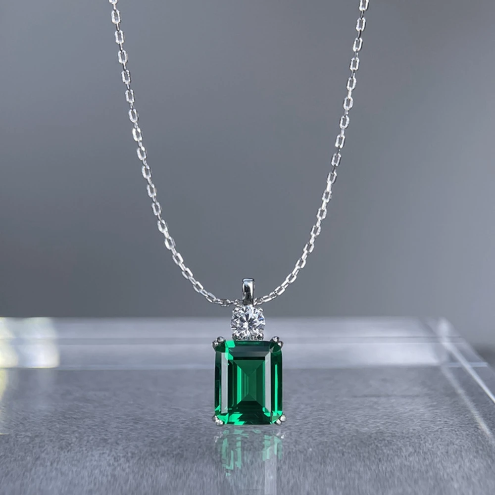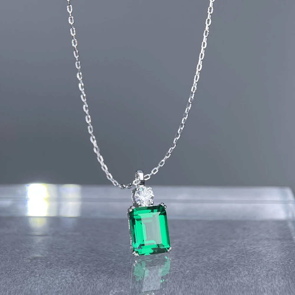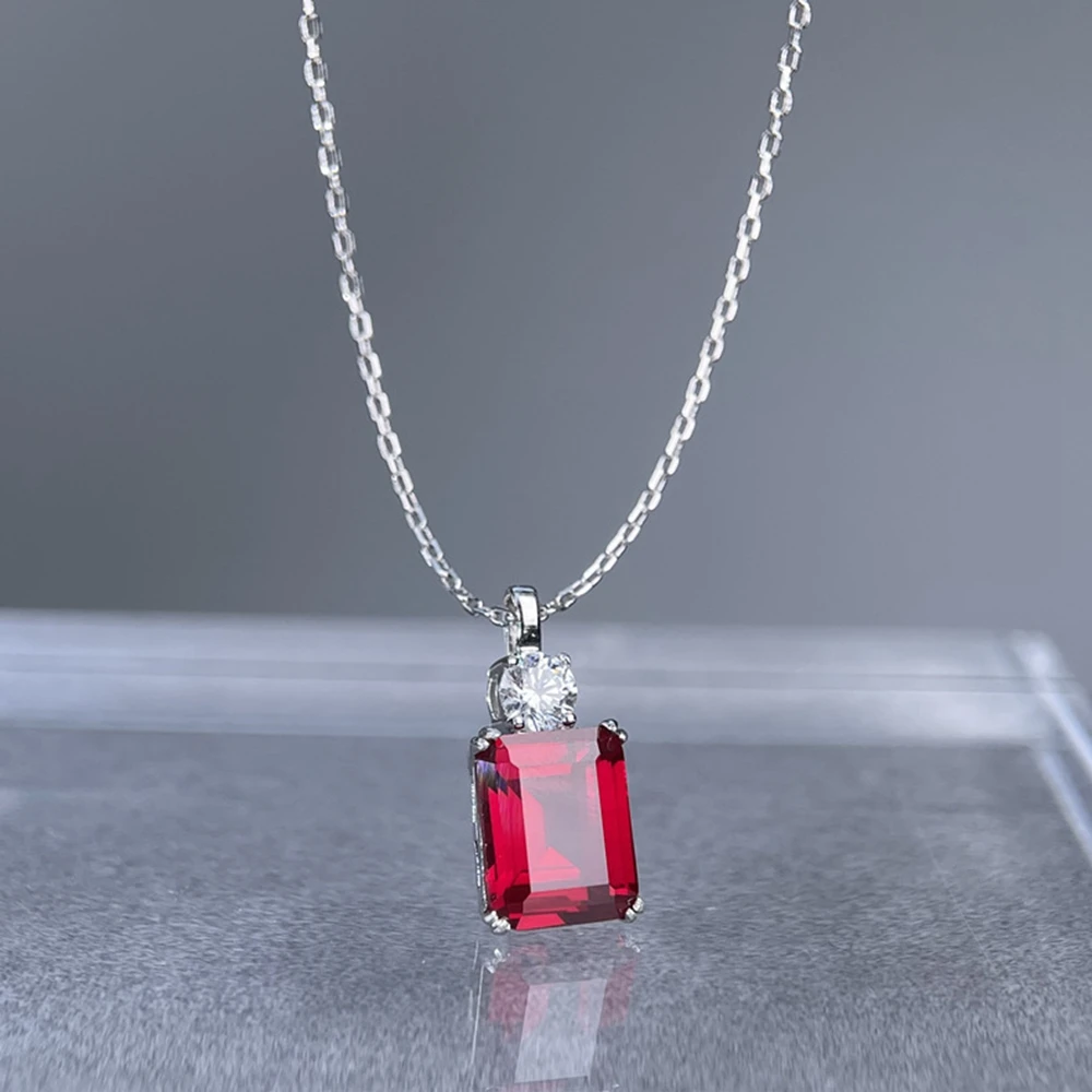 Wong Rain 925 Sterling Silver Emerald Cut 8*10 MM Tanzanite Sapphire Ruby Citrine Emerald High Carbon DiamondGems Pendant Necklace Fine Jewelry Wholesale