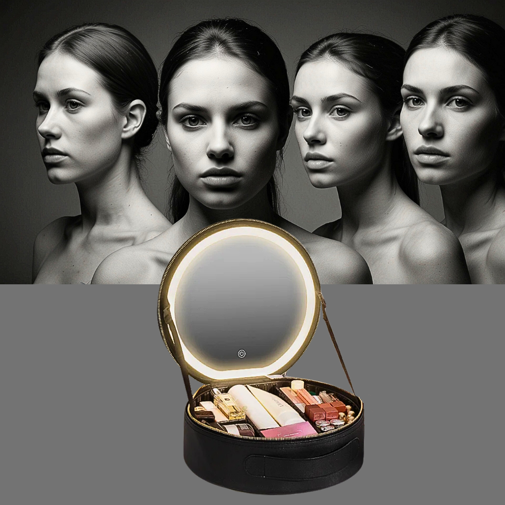 Immagina di truccarti con una luce impeccabile, una visione ampia del viso e tutti i tuoi prodotti perfettamente ordinati… ovunque tu sia. La Borsa Make Up da Viaggio GlamLuxe con Specchio LED unisce organizzazione, tecnologia e stile in un unico accessorio iconico che trasforma ogni momento beauty — dal quotidiano ai viaggi — in un rituale professionale, comodo e raffinato.