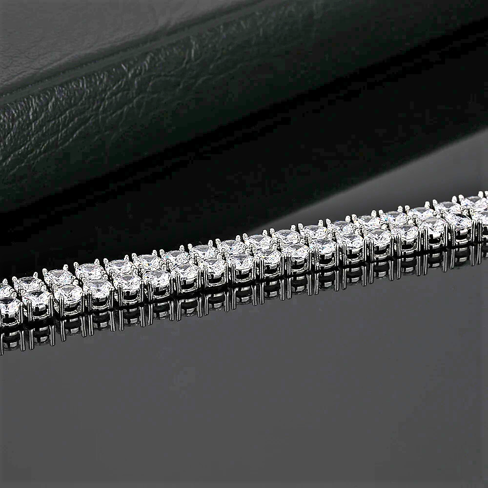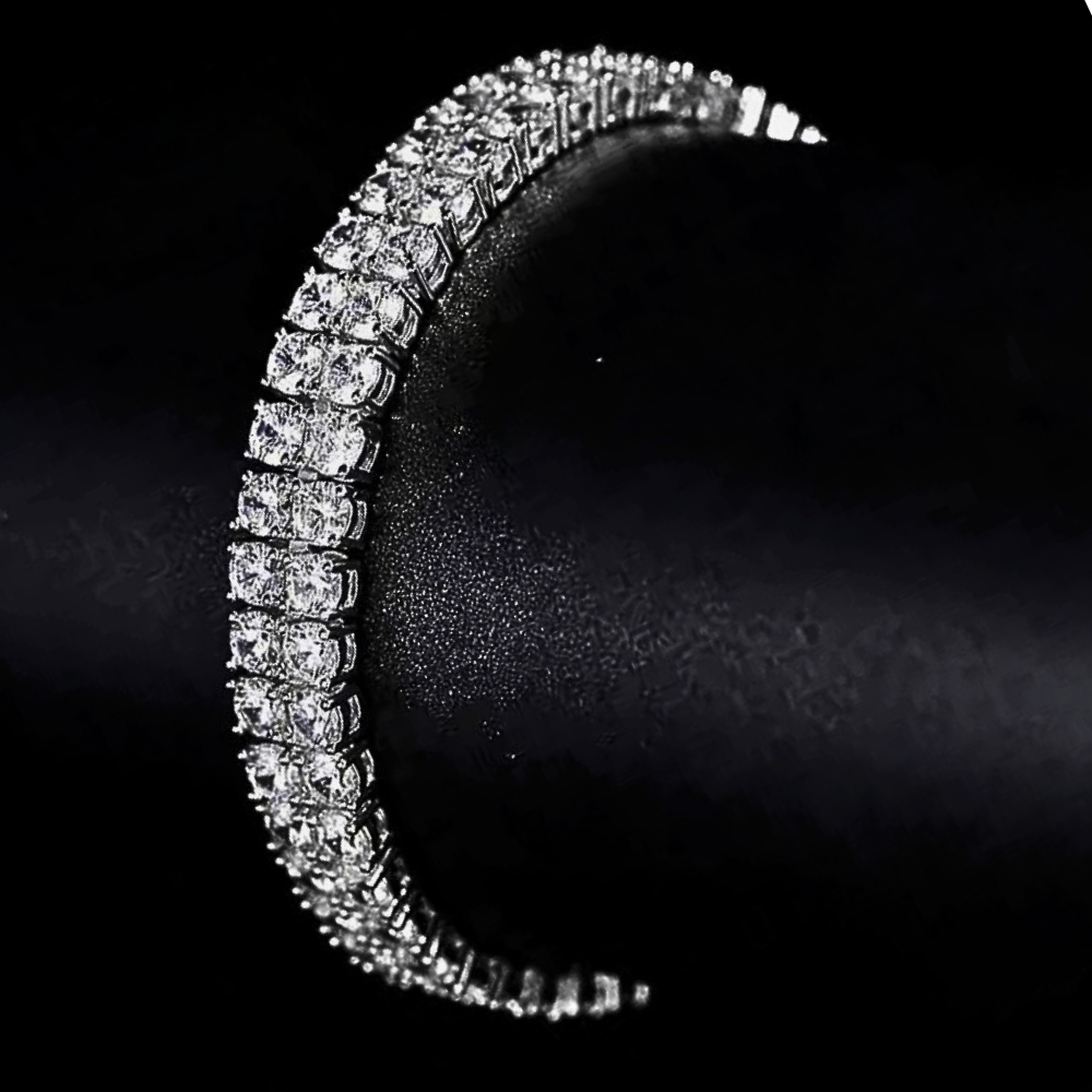 Questo bracciale è pensato per chi sceglie gioielli capaci di definire lo stile con decisione. Le due file di moissaniti perfettamente allineate creano una superficie luminosa continua, che avvolge il polso con equilibrio e forza visiva. Il risultato è un gioiello di grande impatto, raffinato nella forma ma deciso nella resa, ideale per chi desidera distinguersi attraverso una luminosità piena e strutturata, senza rinunciare all’eleganza.
