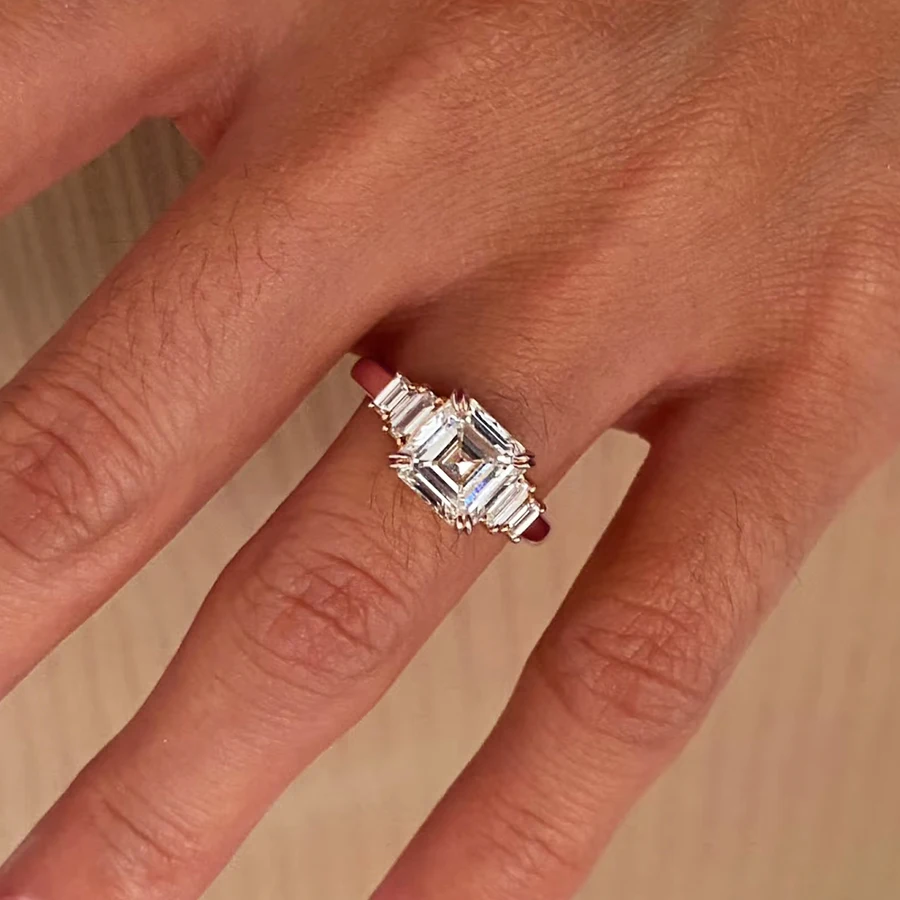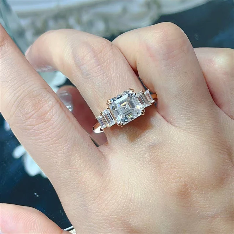 BXINY 4CT Asscher Cut All Moissanite Ring 100% S925 Silver Baguette Diamond Wedding Band for Women Gift Jewelry With Certificatelry