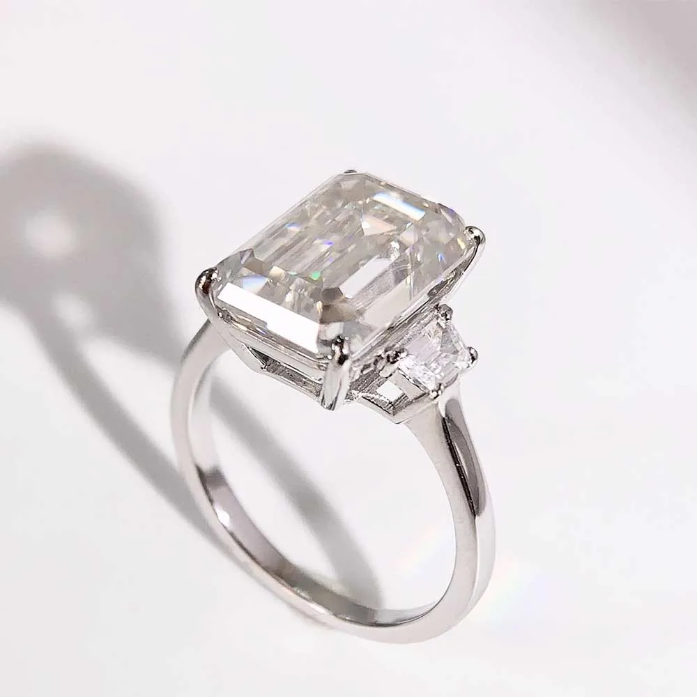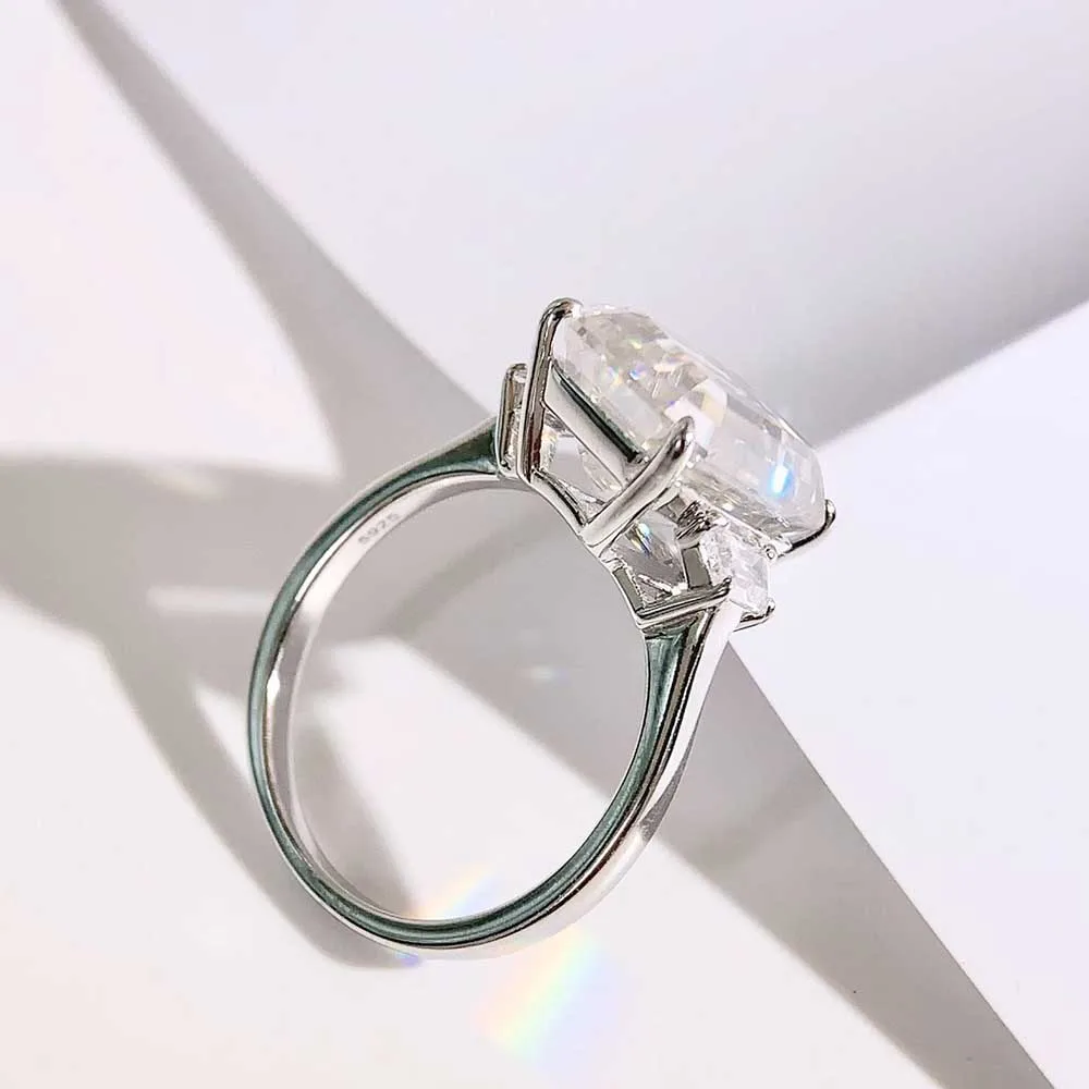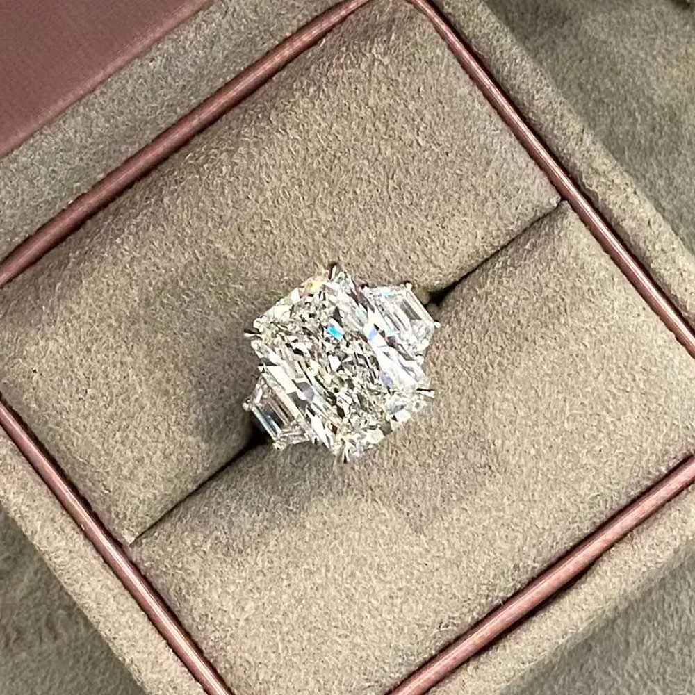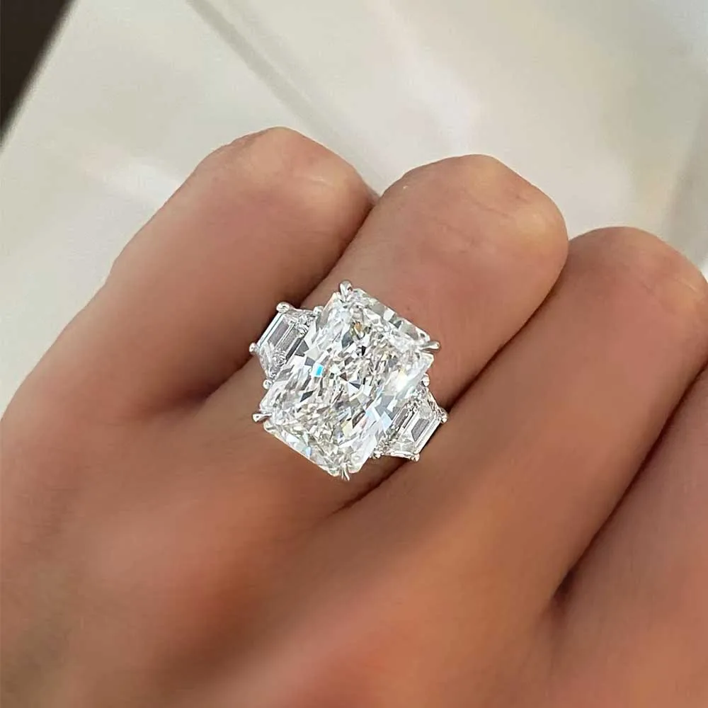 BXINY Luxury 10CT Radiant/Emerald Cut Moissanite Rings 100% S925 Silver 3-Stone Ice-cut Diamonds Women Men Wedding Bands Jewelry