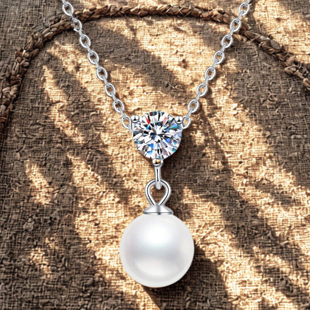 Collana con Moissanite di ct 0,50 e Perla Naturale