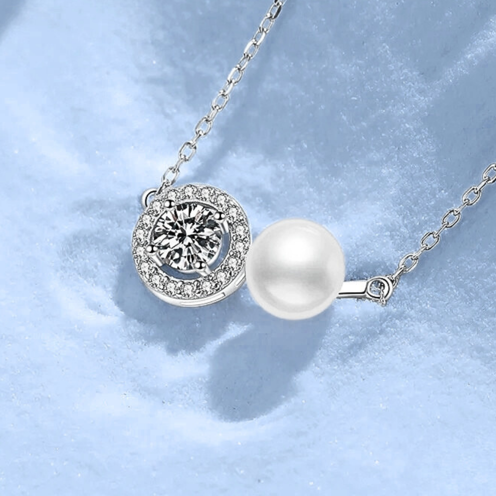 Questa collana con moissaniti e perla naturale interpreta il design moderno attraverso un gioco di forme bilanciate ma non simmetriche. La composizione centrale si sviluppa orizzontalmente, alternando volumi, luce e materia in modo originale. Da un lato la brillantezza intensa della pietra certificata, dall’altro la presenza morbida della perla d’acqua dolce: due elementi diversi che dialogano con naturale armonia. È una creazione pensata per chi ama uno stile contemporaneo, pulito, ma ricco di personalità, capace di distinguersi con discrezione e sicurezza.