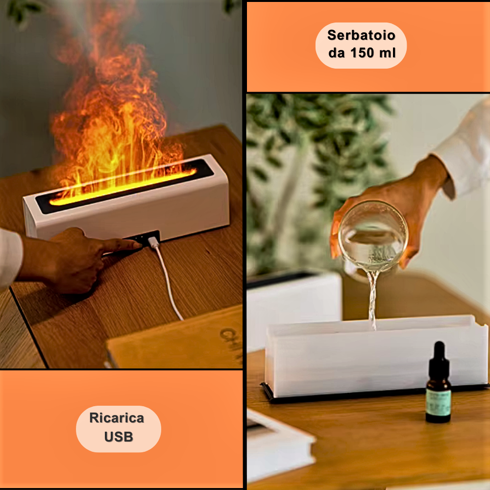 Diffusore per Aromaterapia a Ultrasuoni con simulazione di Fiamma