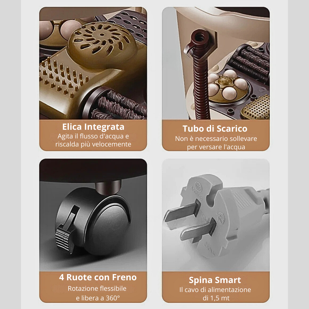 Rendi ogni giornata più leggera e piacevole con il pediluvio massaggiante che trasforma la tua casa in una spa professionale, senza appuntamenti, senza spostamenti e senza stress. Basta immergere i piedi per sentire il calore avvolgere dolcemente muscoli e articolazioni mentre l’acqua si anima in un idromassaggio dinamico e le testine 3D lavorano sui punti energetici con precisione sorprendente. Ogni movimento scioglie le tensioni accumulate, riattiva la circolazione e dona un sollievo immediato a piedi affaticati, caviglie gonfie e gambe pesanti. In quel momento, tutto rallenta: la mente si distende, il respiro si approfondisce e una sensazione di calma profonda si diffonde in tutto il corpo. È uno spazio solo tuo, un rifugio quotidiano di benessere, ricarica e cura di sé. In appena 15 minuti ritrovi leggerezza, vitalità e buon umore — pronta a ricominciare, più energica e più serena di prima.
