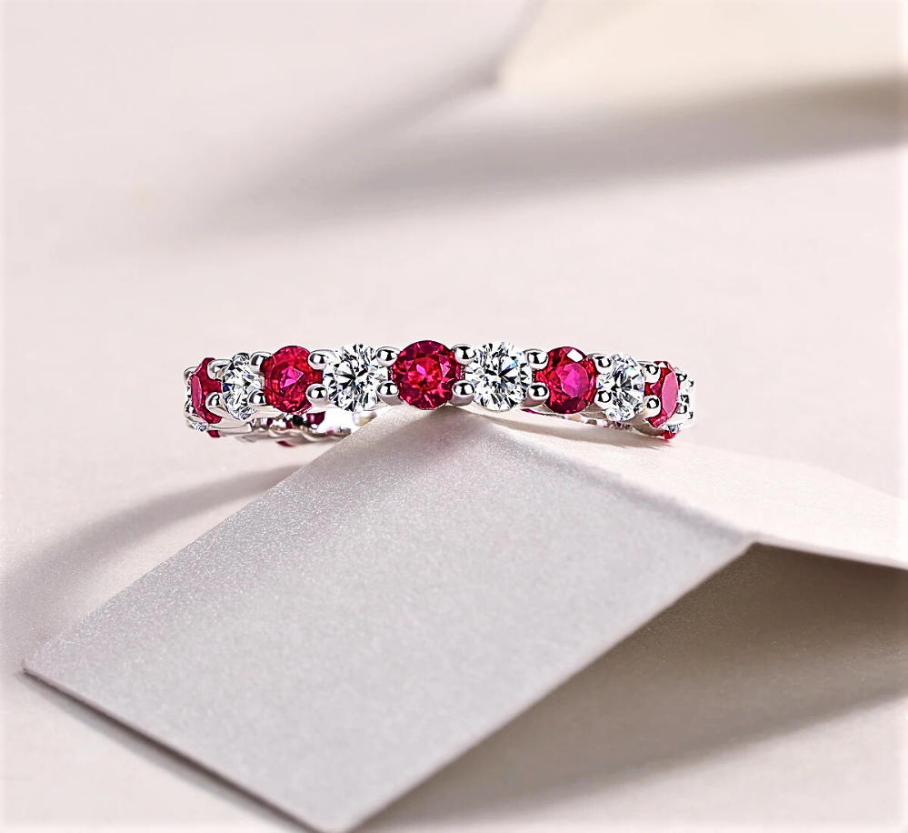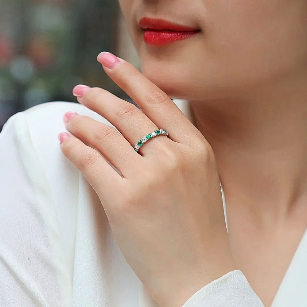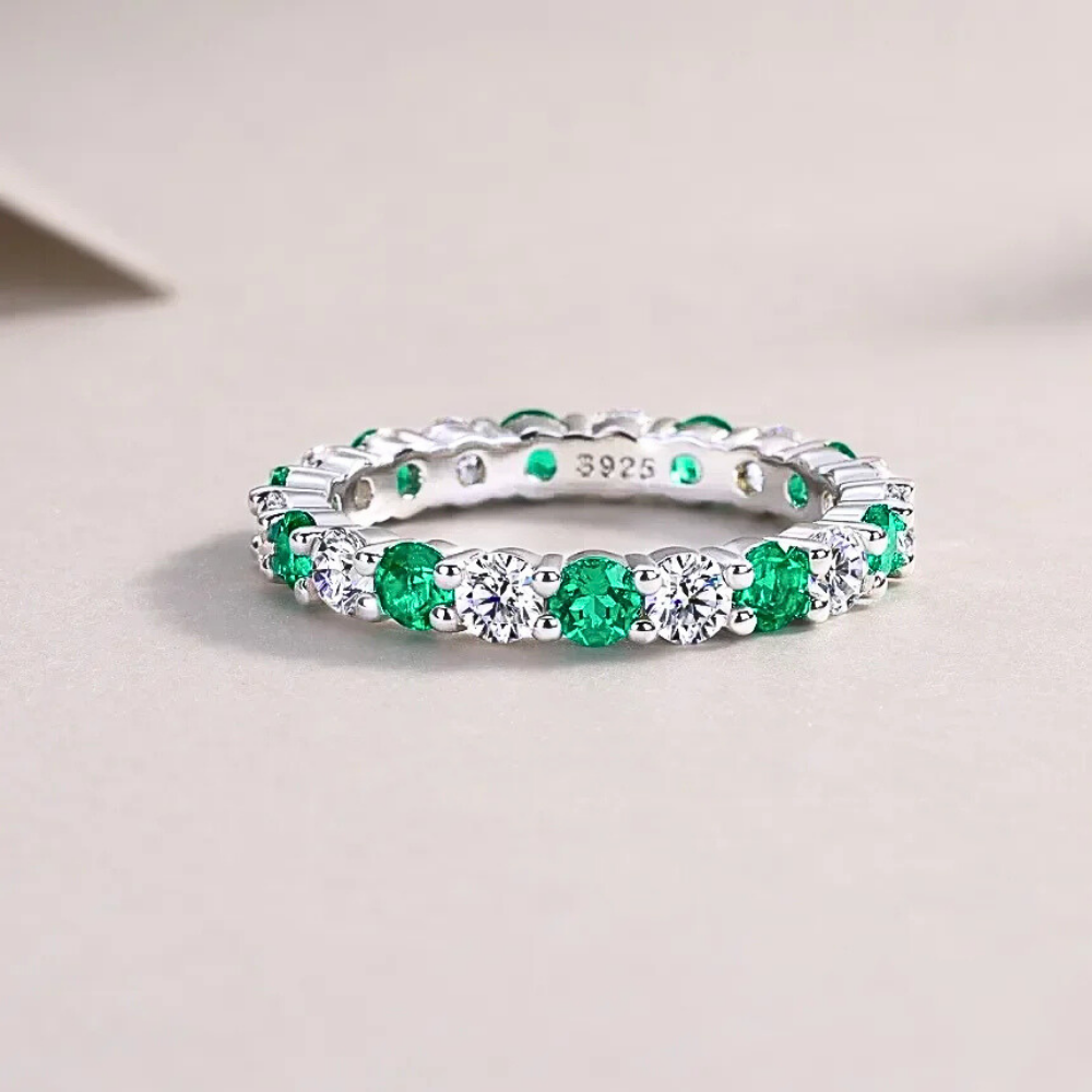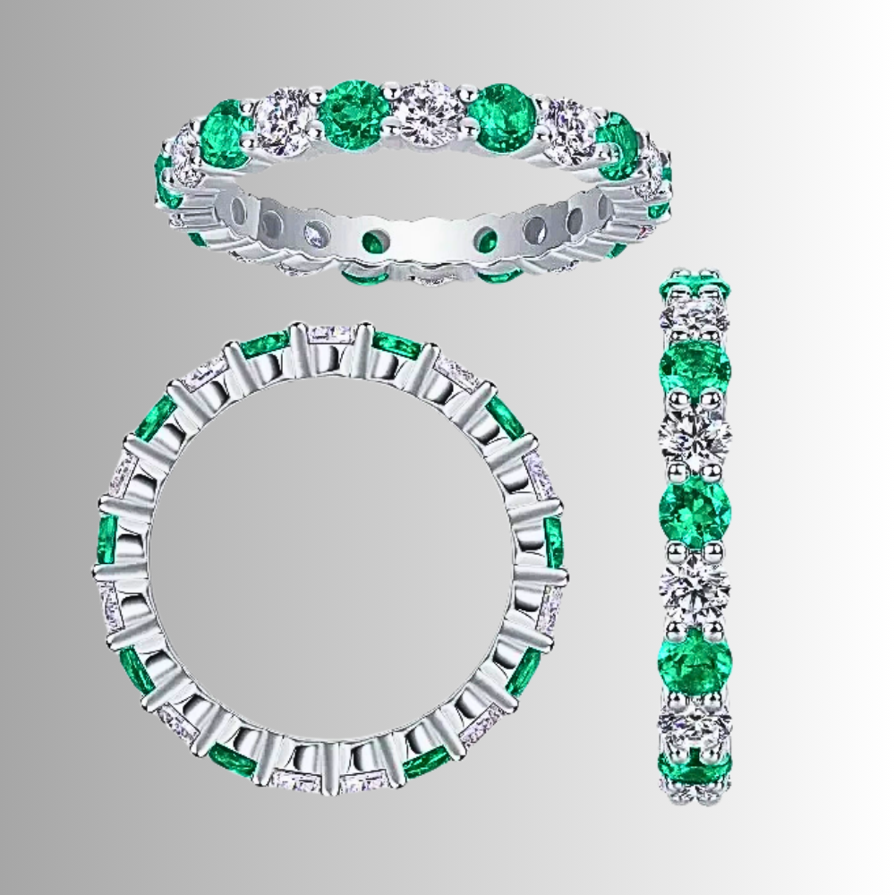 Questa fedina eternity amplia la luminosità classica con pietre da 3 mm, creando un effetto visivo più deciso e scenico. L’alternanza di moissaniti D color con tonalità profonde di zaffiro, rubino o smeraldo colombiano trasforma un dettaglio quotidiano in un piccolo gioiello di carattere. Perfetta da indossare da sola per un gesto di luce evidente o in combinazione con altri anelli per stacking elegante, racconta femminilità moderna e lusso accessibile in modo consapevole.