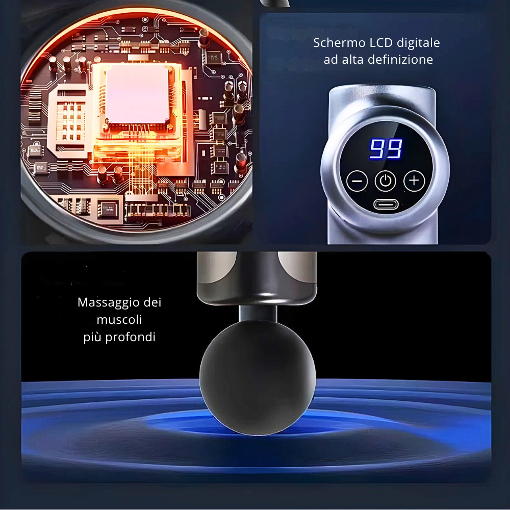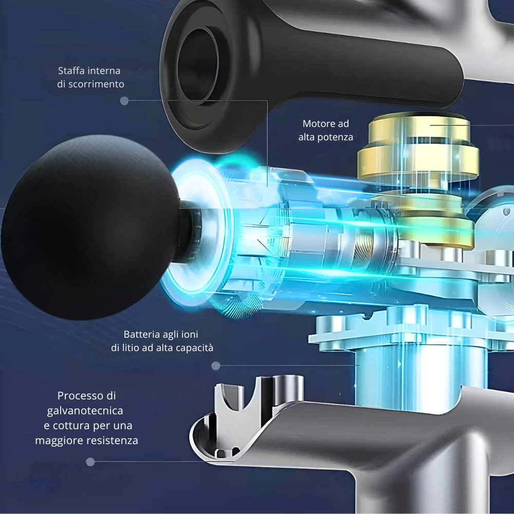 Al cuore di questo dispositivo si trova un motore ad alte prestazioni con 3800 giri al minuto, capace di offrire una potenza costante e silenziosa anche durante i trattamenti più intensi. La biella interna in lega di alluminio ottimizza la trasmissione dell’energia, garantendo un’azione profonda ma controllata che agisce sulle fibre muscolari senza stressare la pelle o le articolazioni.