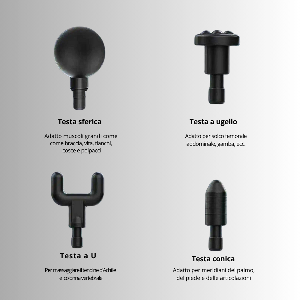 - Testina a 4 Artigli e a Cuscino d’Aria: per un massaggio equilibrato su tutti i gruppi muscolari.