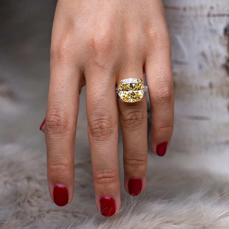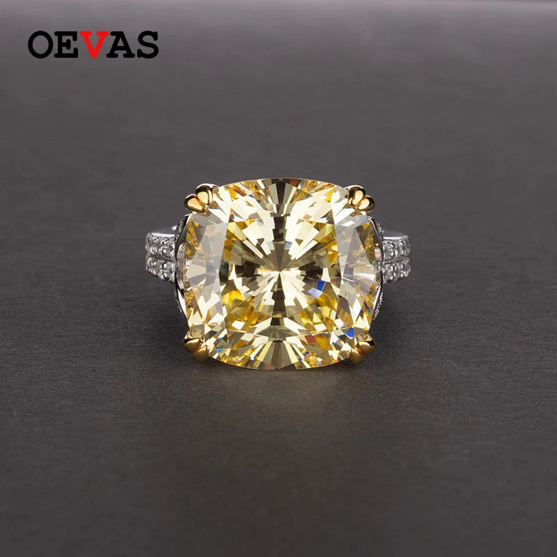 Name:OEVAS Charms 10ct High Carbon diamond Ring for Women 100% Genuine 925 Sterling Silver 14*14 Fine Jewelry Engagement Anniversary