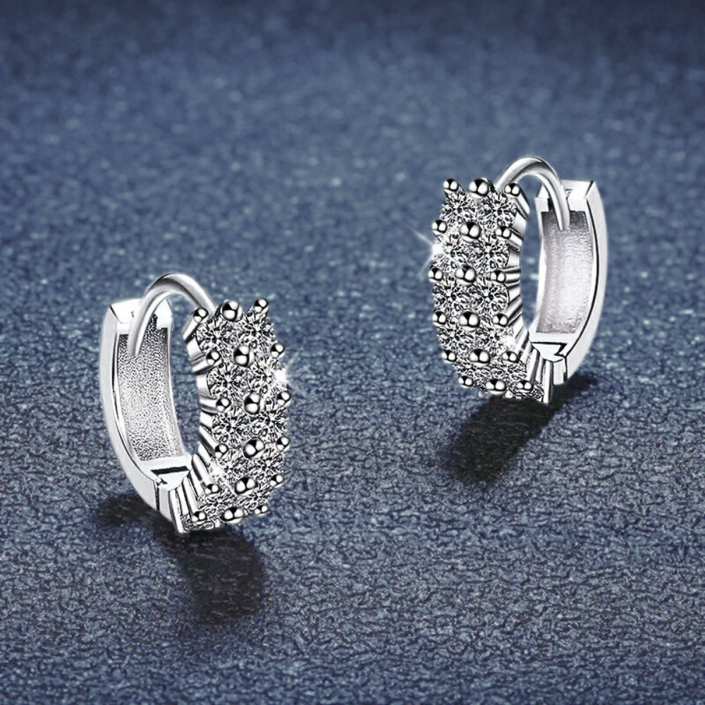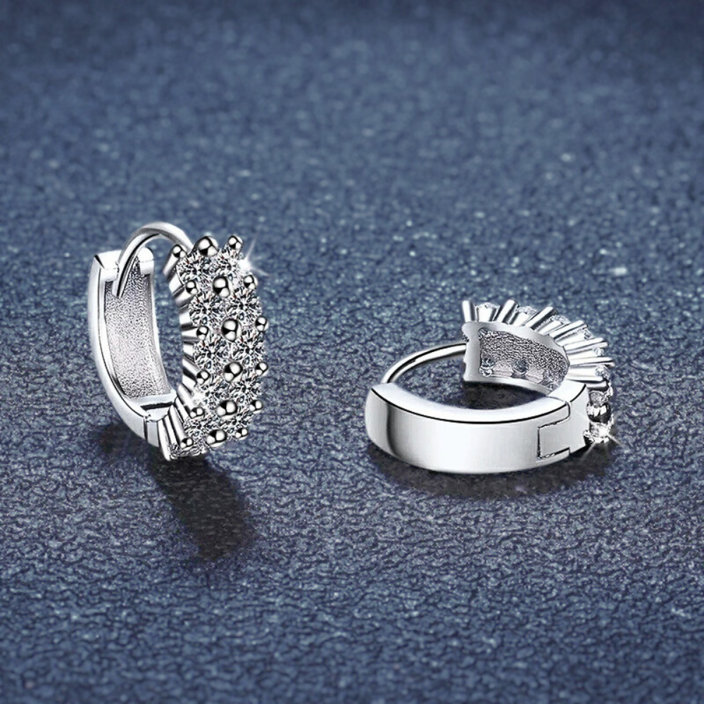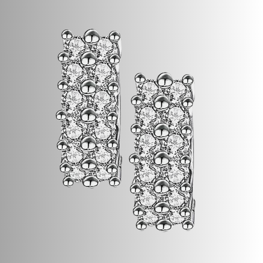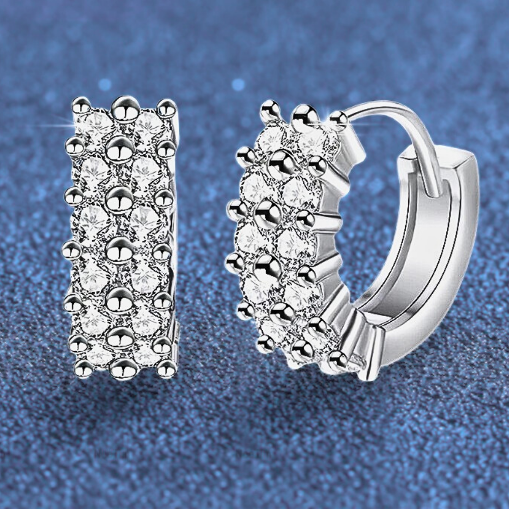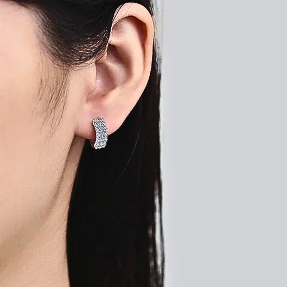 Questi orecchini a doppia striscia con moissaniti da 0,72 carati totali interpretano l’anello classico con un’estetica moderna e pulita. La struttura composta da due linee parallele crea una presenza luminosa ben definita che incornicia il viso con eleganza. Il risultato è un gioiello equilibrato e raffinato, capace di valorizzare i lineamenti senza risultare eccessivo. Un accessorio pensato per chi ama dettagli brillanti ma discreti, perfetto da indossare ogni giorno o per completare con naturalezza un look più elegante.