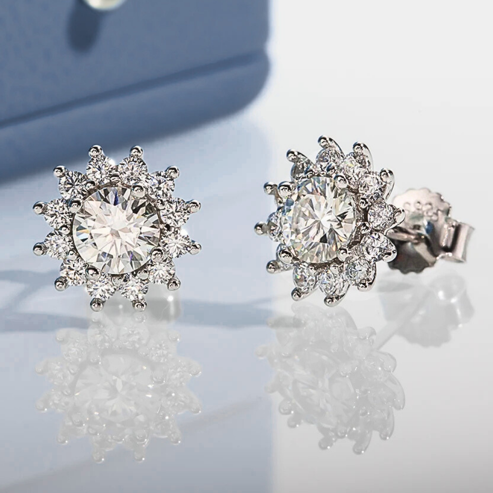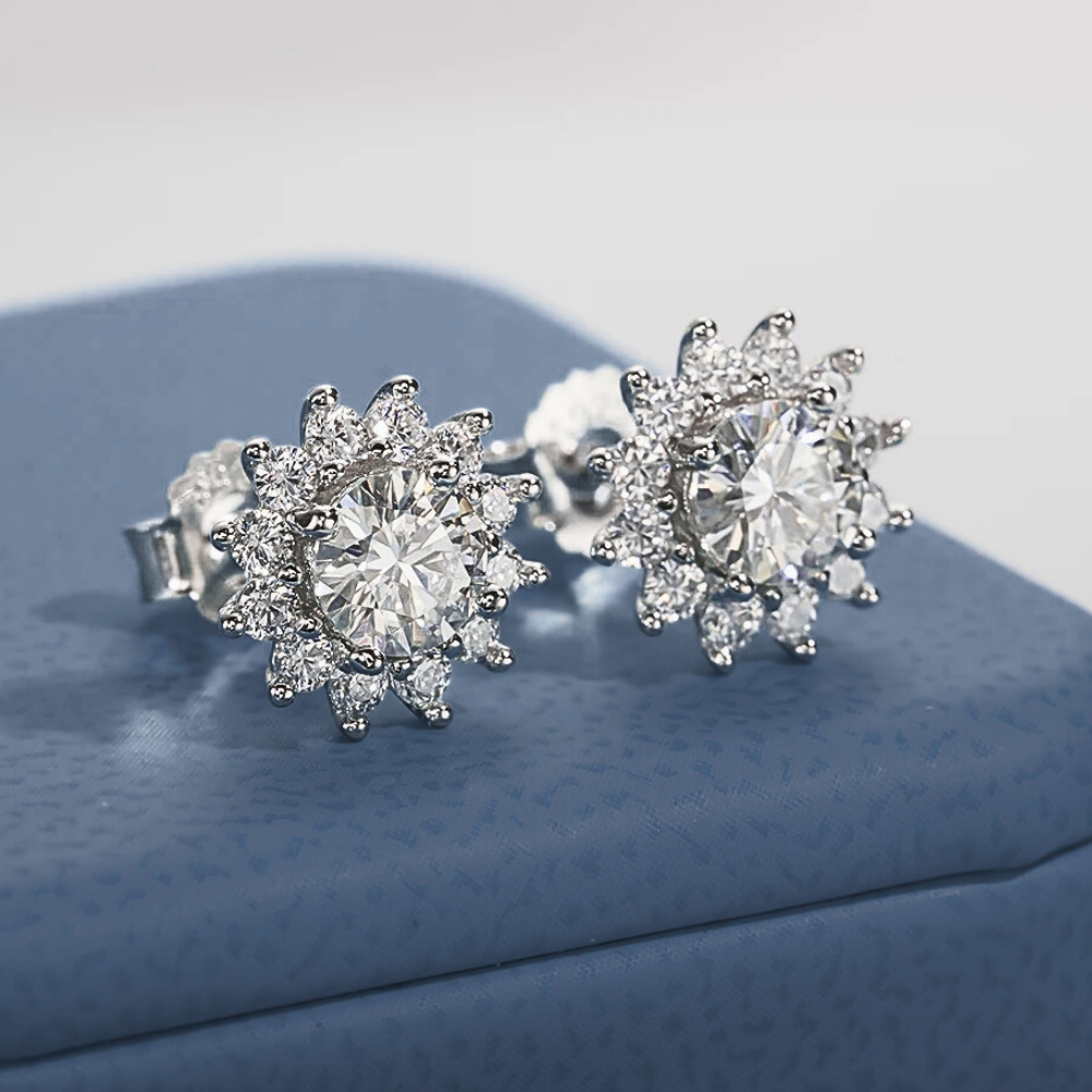 Orecchini a Girasole con Moissaniti per ct 1,00