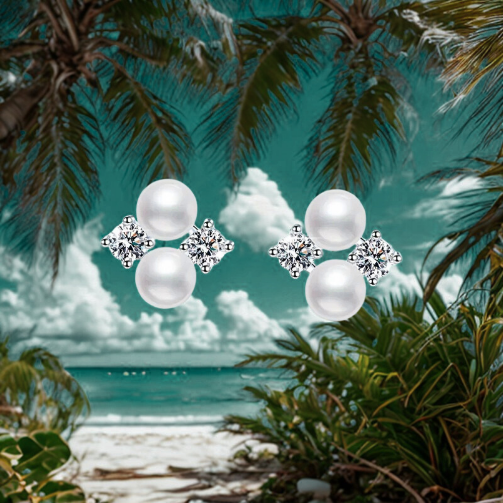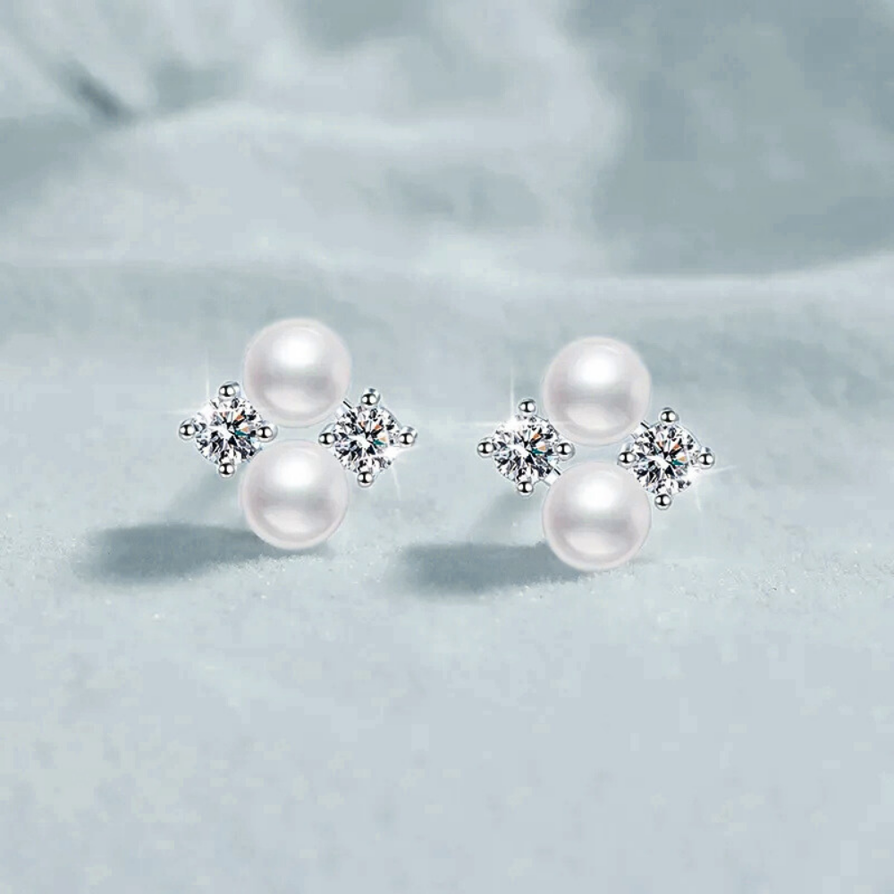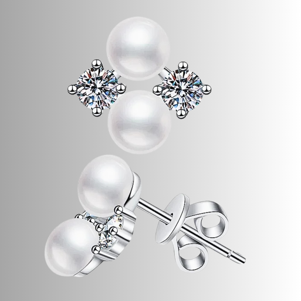 Orecchini a Perno con Moissaniti e Perle Naturali