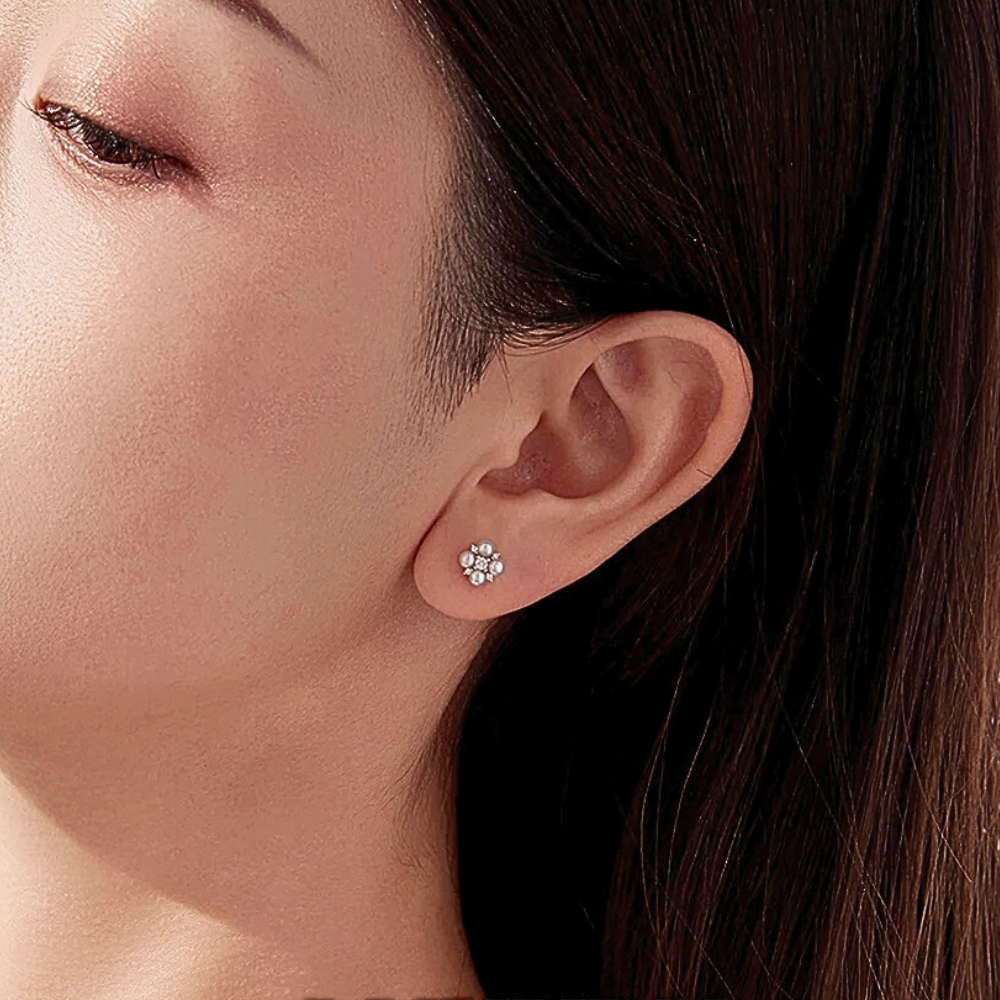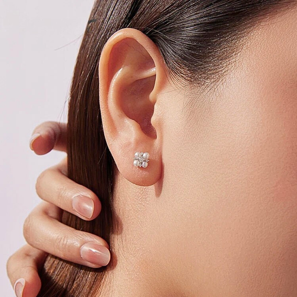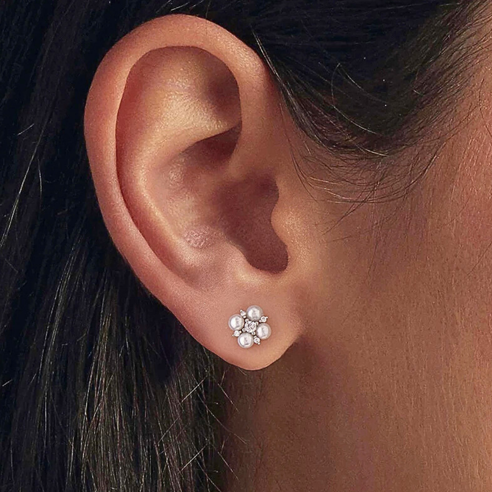 Questi orecchini minimalisti portano un tocco di brillantezza quotidiana senza risultare invasivi. La forma a quadrifoglio, reinterpretata in chiave moderna, combina armoniosamente le perle naturali con il fascino scintillante delle moissaniti, creando un piccolo gioiello dal carattere distintivo ma raffinato. Perfetti per chi cerca dettagli preziosi in uno stile sobrio e femminile, valorizzano il lobo con discrezione e leggerezza.