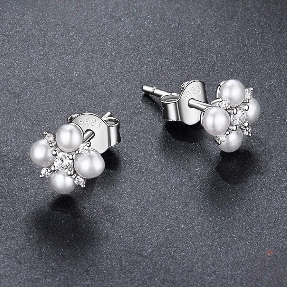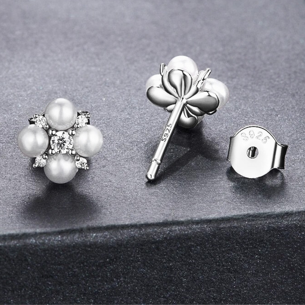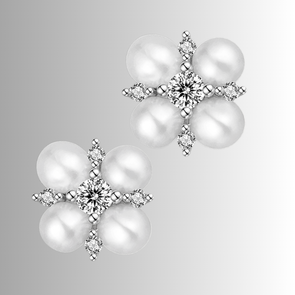 Orecchini a Quadrifoglio con Moissaniti e Perle Naturali