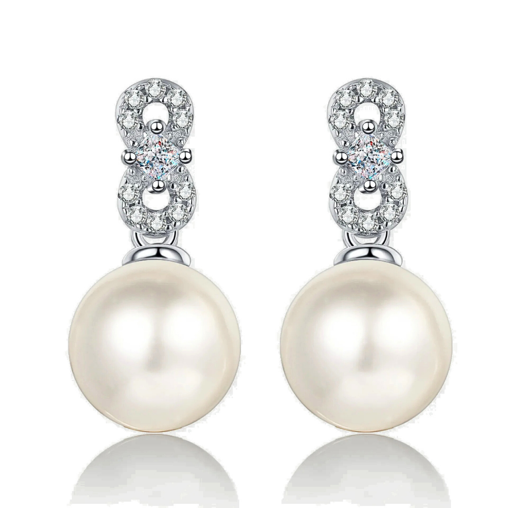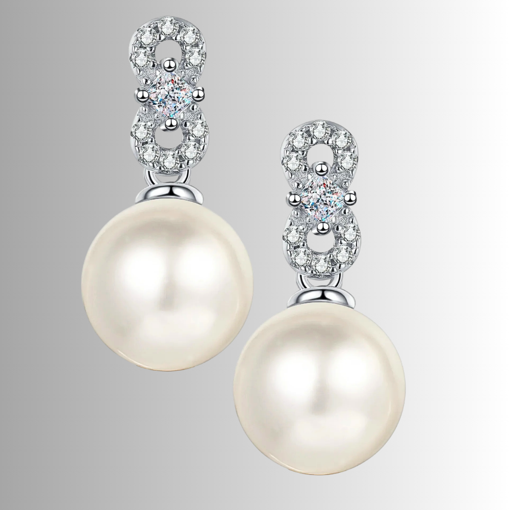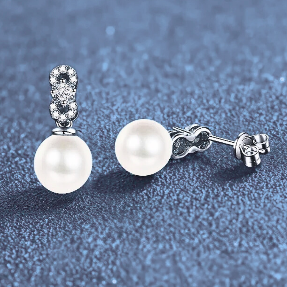 Orecchini con Moissaniti e Perla Naturale Pendente