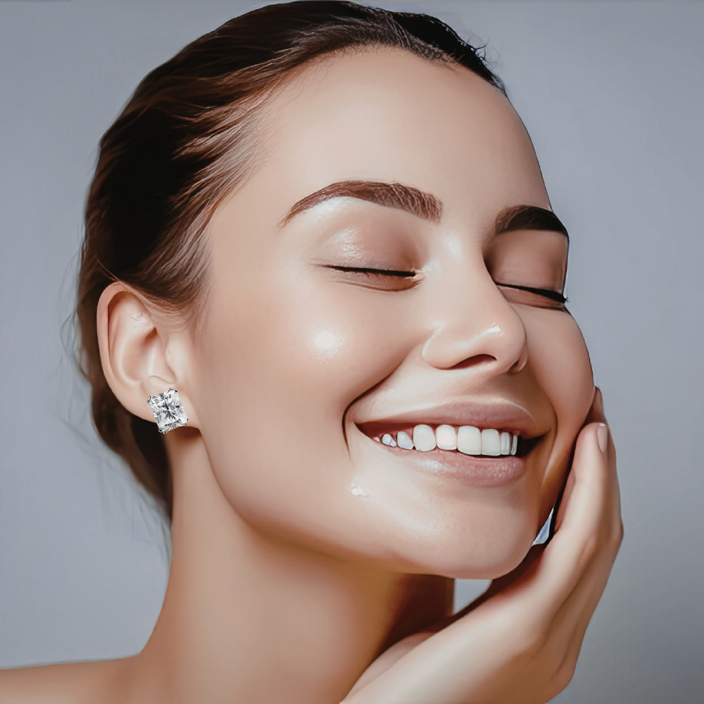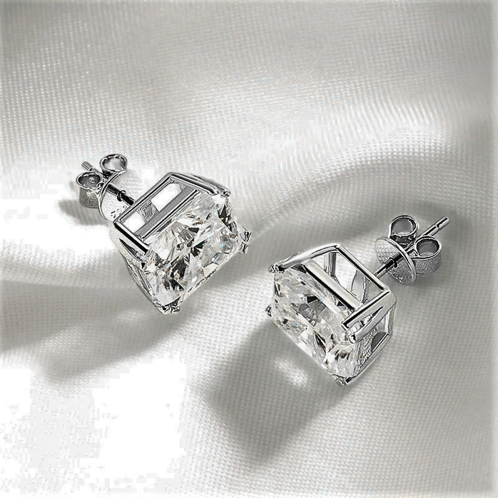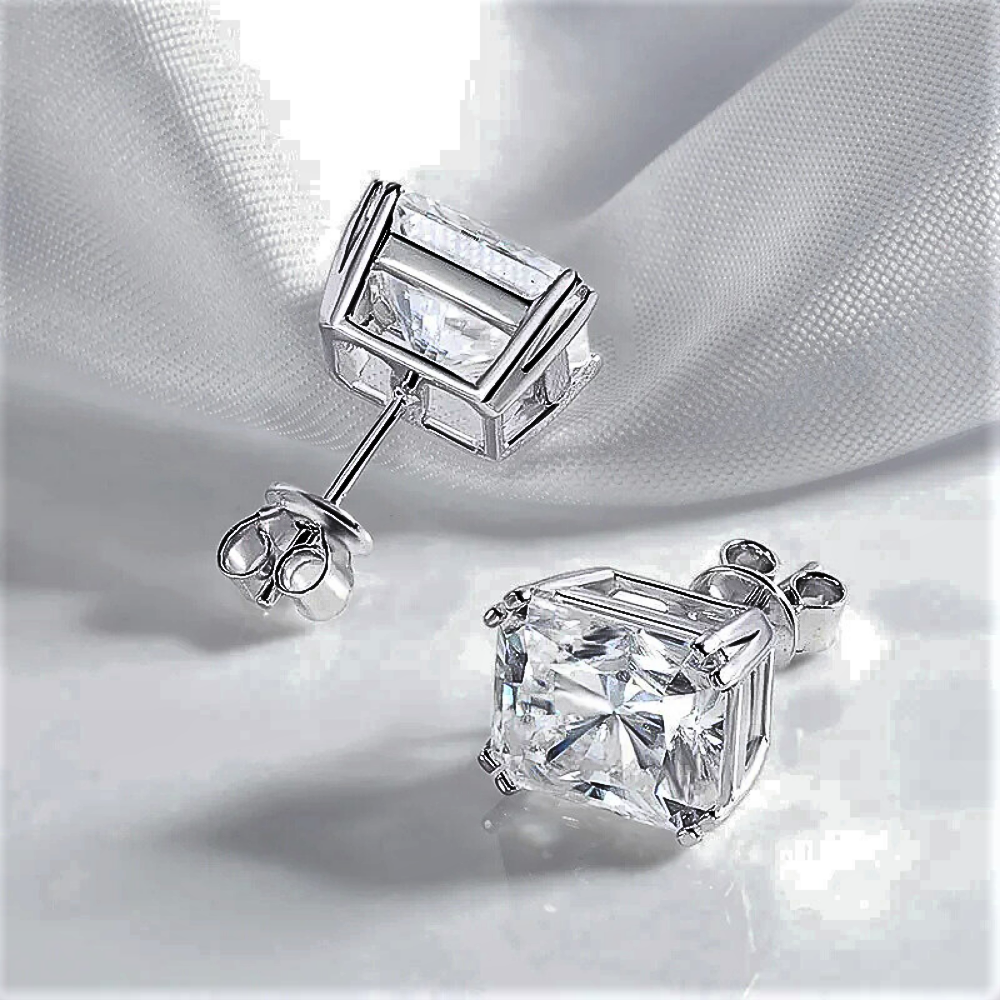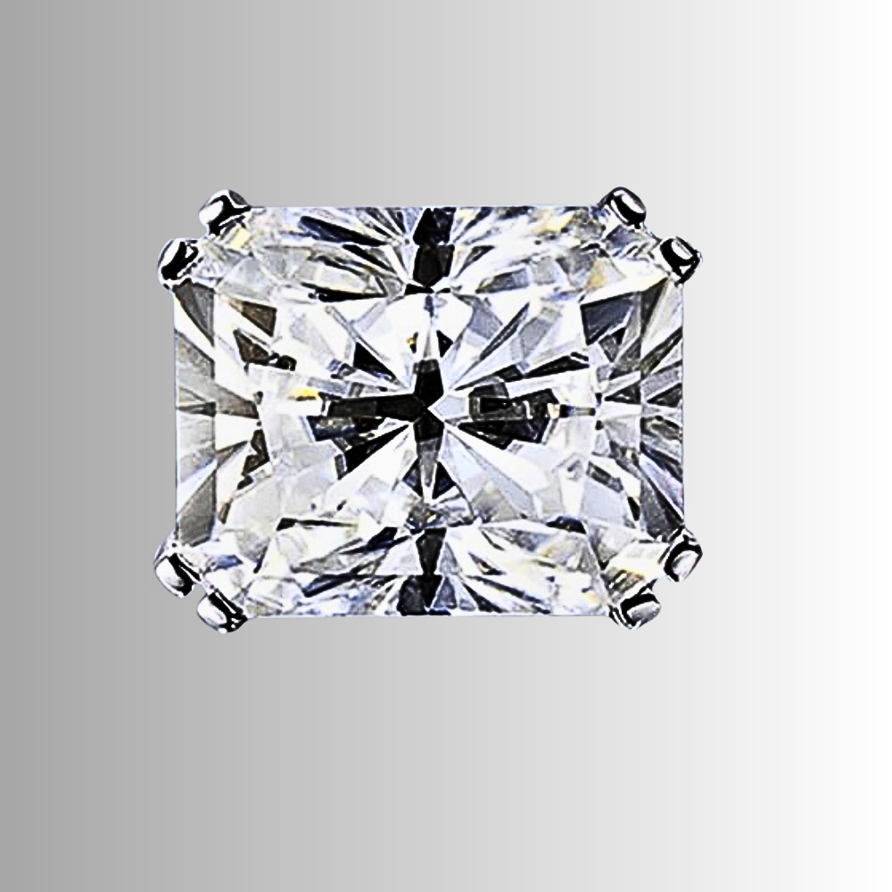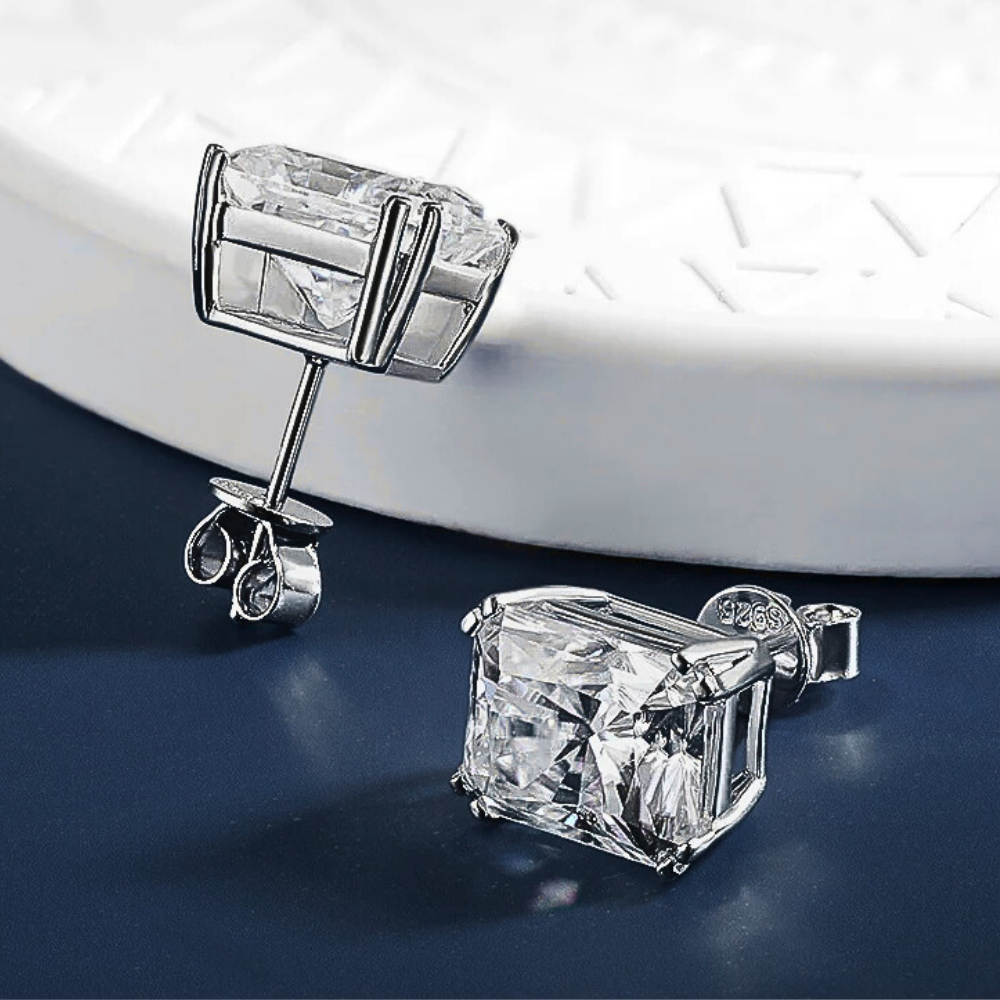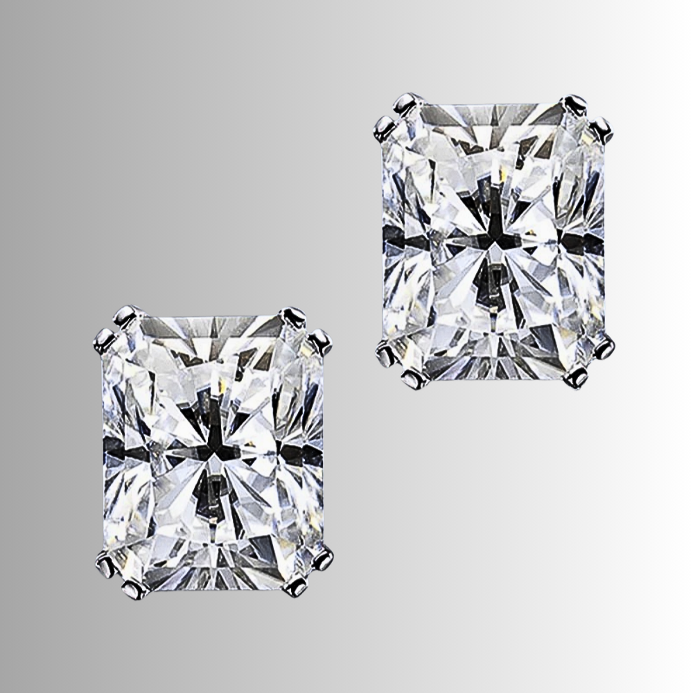 Linee pulite, proporzioni equilibrate e una brillantezza intensa definiscono questi orecchini punto luce con moissanite taglio Radiant. La forma rettangolare con angoli smussati unisce la struttura elegante del taglio smeraldo alla vivacità del taglio brillante, creando riflessi profondi e dinamici. Il risultato è una luce più ampia e stratificata, capace di valorizzare i lineamenti con presenza sofisticata ma sempre armoniosa.