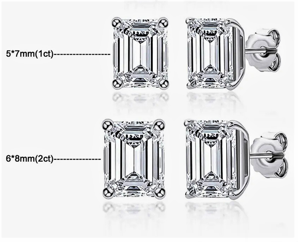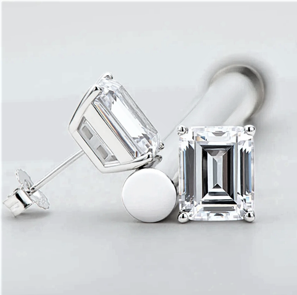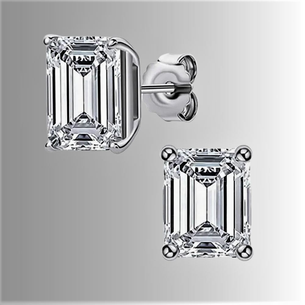 Questi orecchini sono disponibili in due varianti di caratura totale: 2 carati totali (1 ct per orecchino) – equilibrio perfetto tra luminosità e discrezione, ideale per l’uso quotidiano e 4 carati totali (2 ct per orecchino) – presenza più decisa, pensata per occasioni eleganti o per chi ama un punto luce più evidente. Entrambe le versioni mantengono proporzioni armoniose e un design essenziale che valorizza il taglio smeraldo senza appesantire il profilo.