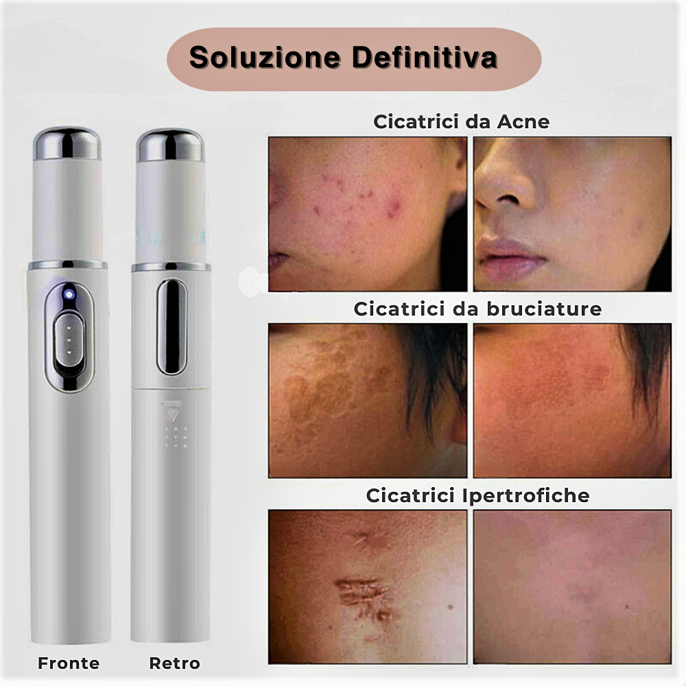Questo dispositivo accelera la guarigione delle cicatrici e favorisce la riparazione dei tessuti danneggiati, rendendo le cicatrici meno visibili e migliorando la texture della pelle.