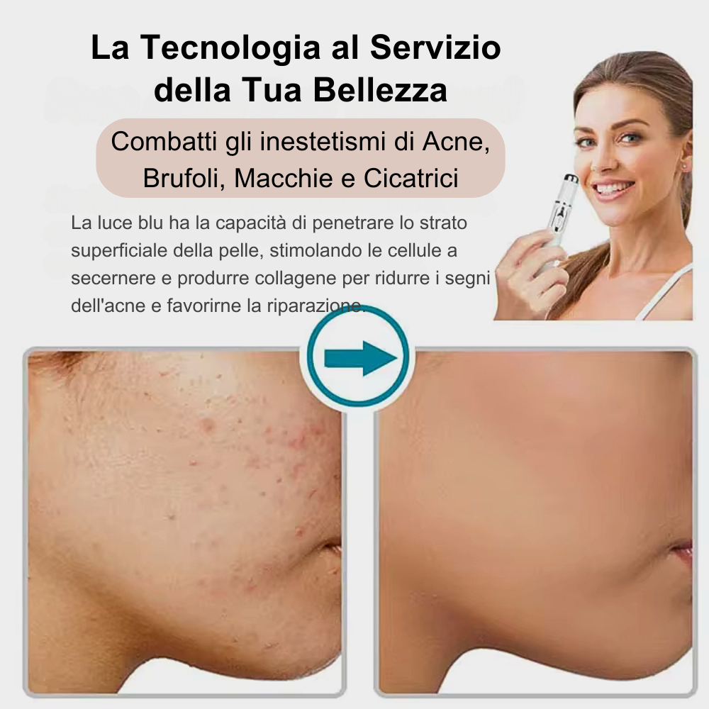 La luce blu combatte i batteri responsabili dell'acne, riducendo l’infiammazione e la produzione di sebo. I miglioramenti nella texture e nell'aspetto della pelle sono visibili già dopo poche sessioni.