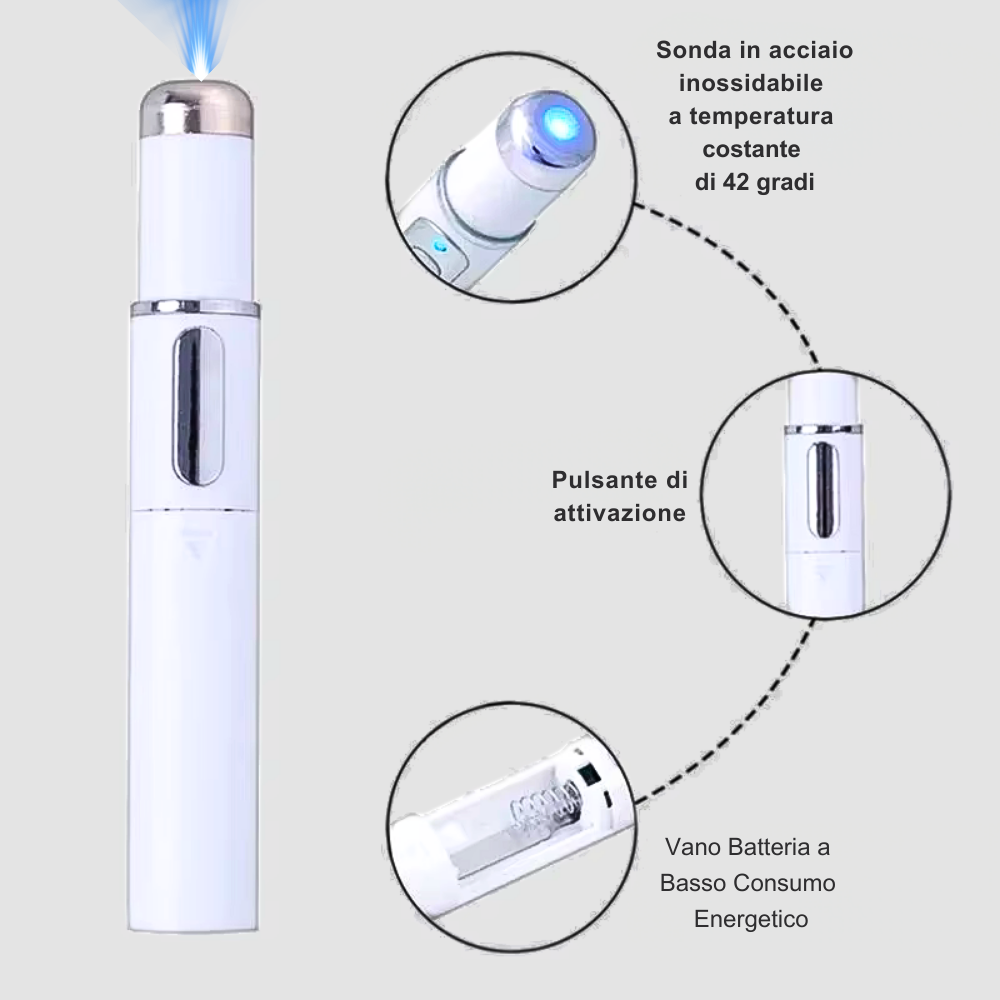 Questa penna laser offre una soluzione non invasiva e priva di effetti collaterali significativi, rendendola sicura e confortevole per un uso regolare.