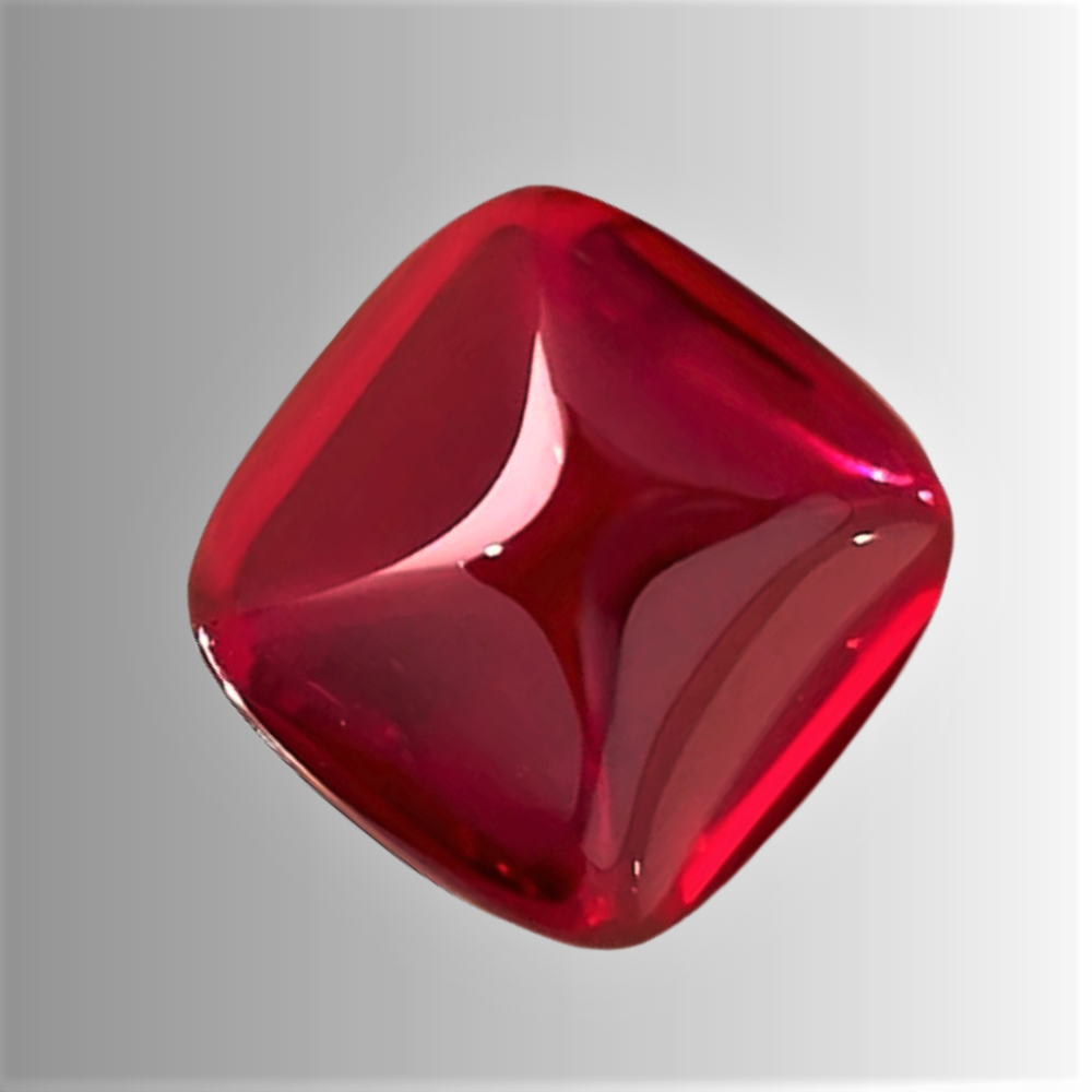 L’altezza della cupola consente alla luce di penetrare, riflettersi e disperdersi in strati successivi, intensificando la saturazione del colore. Il rosso si presenta pieno, vellutato e profondo, senza zone spente: una qualità estremamente rara nei rubini estratti in natura, dove inclusioni e difetti ottici spesso riducono l’effetto visivo.