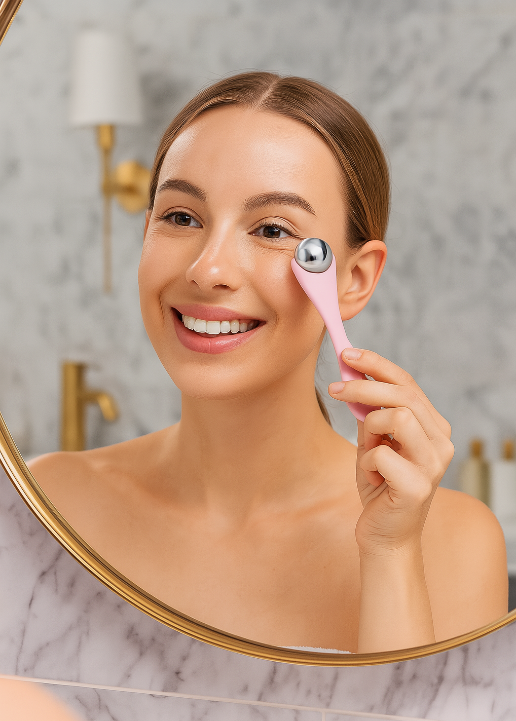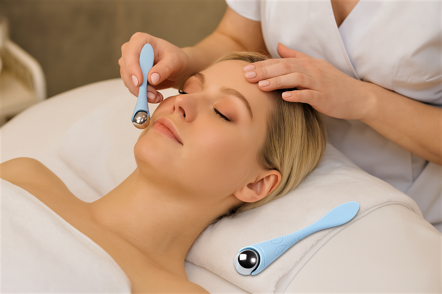 - Rilassamento muscolare e distensione delle rughe dinamiche Il movimento controllato della sfera aiuta a rilassare i micro-muscoli orbicolari, riducendo la tensione che contribuisce alla formazione delle linee sottili.
