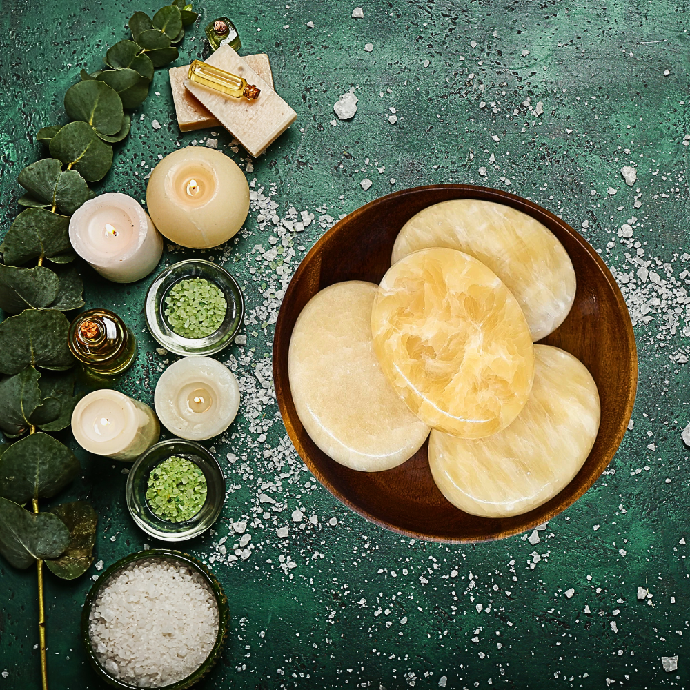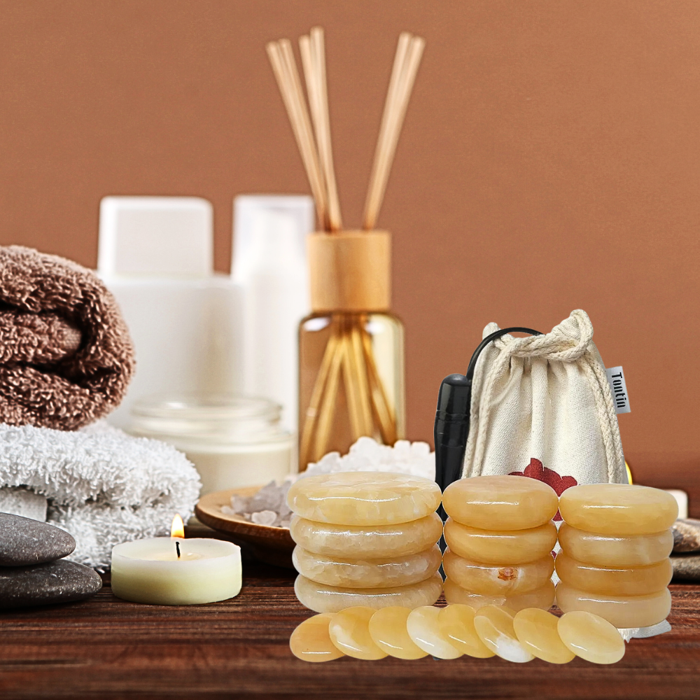 Set di 20 Pietre da Massaggio in Topazio Naturale con borsa riscaldante