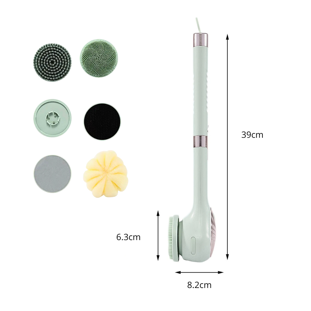 Trasforma ogni doccia in un rituale di benessere completo! La nostra spazzola elettrica multifunzione con 5 testine intercambiabili e un pratico adattatore unisce design elegante, tecnologia impermeabile e performance professionali. Perfetta per detergere, massaggiare, esfoliare e coccolare ogni centimetro del corpo, ti regala una pelle più liscia, luminosa e sana.