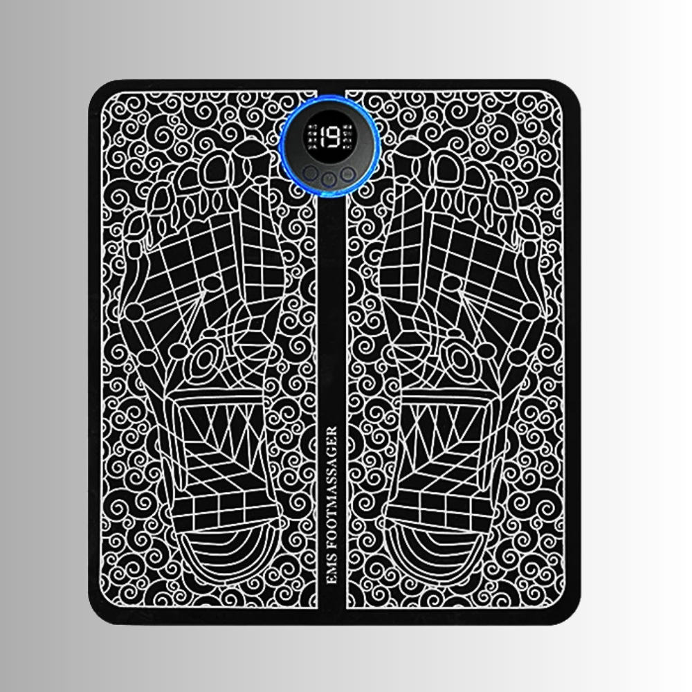 Il tappetino è progettato per la riflessologia plantare, con le due figure dei piedi stampate come guida per la stimolazione dei punti riflessi. La pressione e le microcorrenti EMS attivate sui punti specifici promuovono la circolazione sanguigna e linfatica, migliorano l’ossigenazione dei tessuti e facilitano l’eliminazione delle tossine. A livello neuropsichiatrico, la stimolazione dei punti riflessi favorisce il rilascio di endorfine e serotonina, modulando ansia, tensione mentale e favorendo stati di rilassamento profondo.