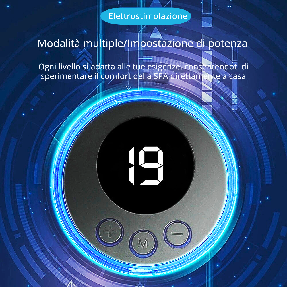 Oltre al tappetino, il set include un secondo dispositivo collegabile a un patch a forma di ala o ai quattro elettrodi per massaggiare gambe, braccia, collo e altre zone difficili da raggiungere. Le 8 modalità di massaggio e i 19 livelli di intensità permettono di raggiungere i tessuti più profondi, migliorando il tono muscolare, rilassando i muscoli affaticati e stimolando la circolazione. Questa versatilità rende il set utile anche per trattamenti mirati contro la cellulite, la ritenzione idrica e il grasso localizzato.