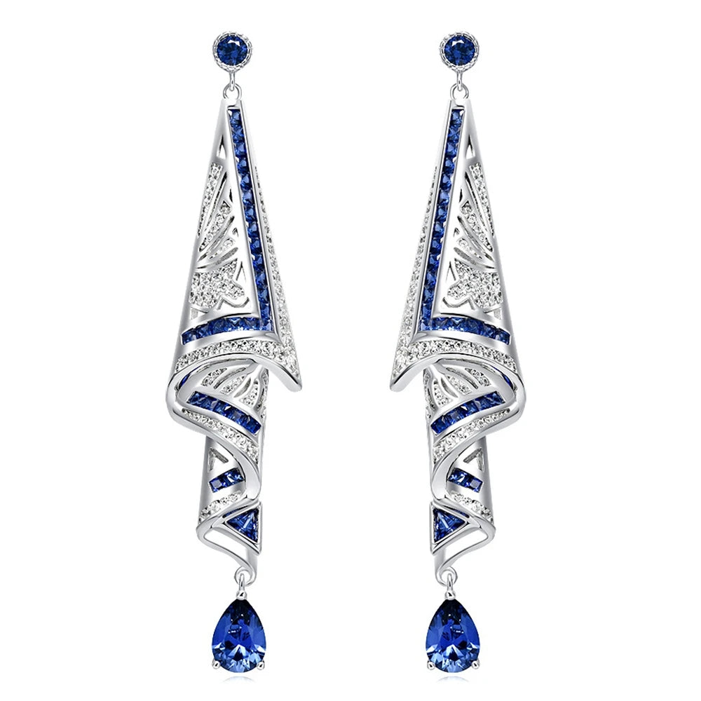 Wong Rain Vintage 100% 925 Sterling Silver Pass Test Lab Sapphire High Carbon Diamond Gemstone Drop Dangle Earrings Fine Jewelry