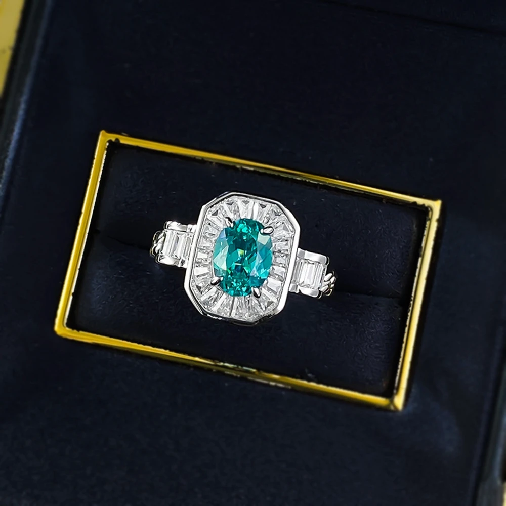 Wong Rain Vintage 925 Sterling Silver Oval Cut 6*8 MM Paraiba Tourmaline Gems High Carbon Diamond Ring for WomenFine Jewelry Anniversary Gifts