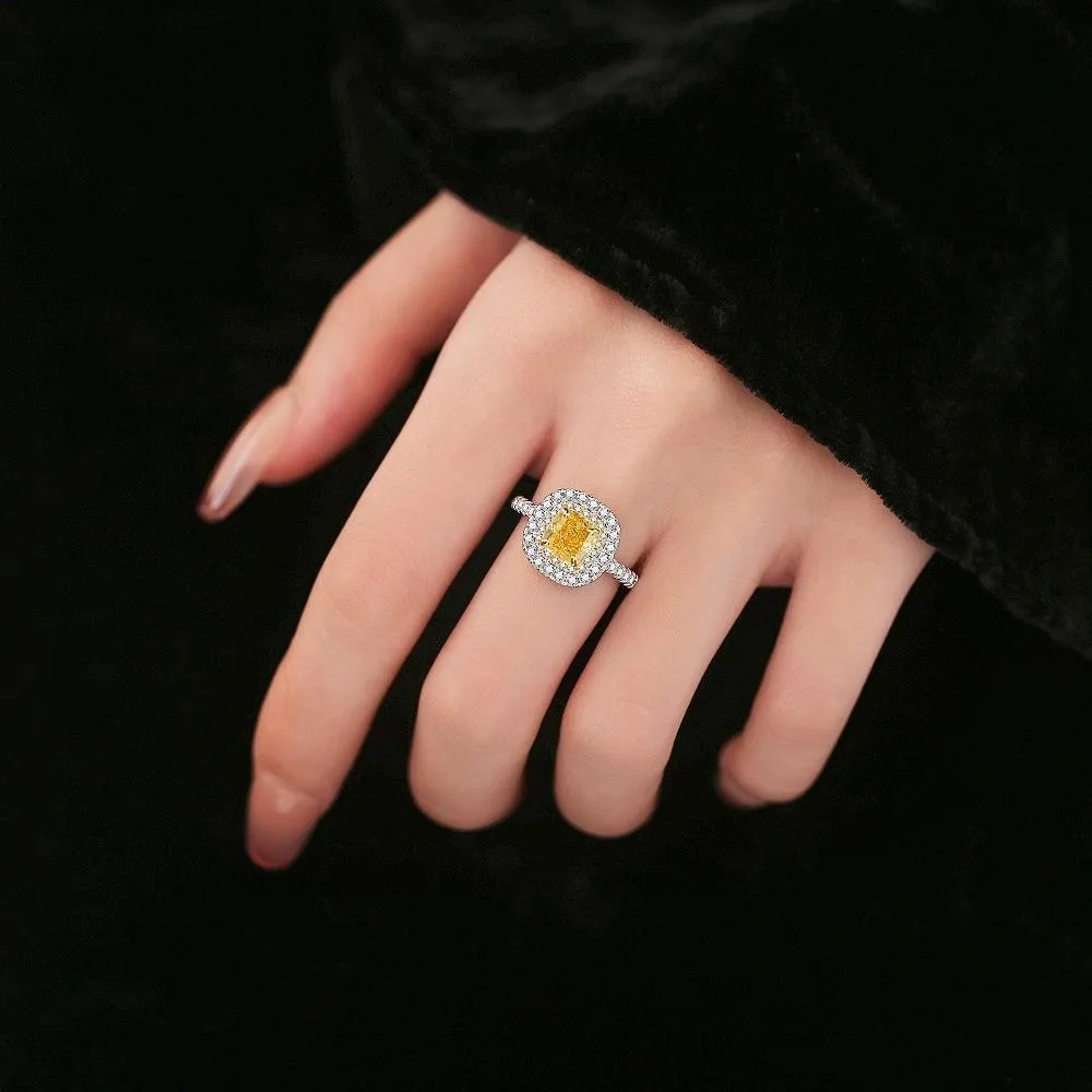 WUIHA 925 Sterling Silver Cushion Cut Lab Sapphire Citrine High Carbon Diamonds Gemstone Wedding Engagement Ring Fine Jewelry