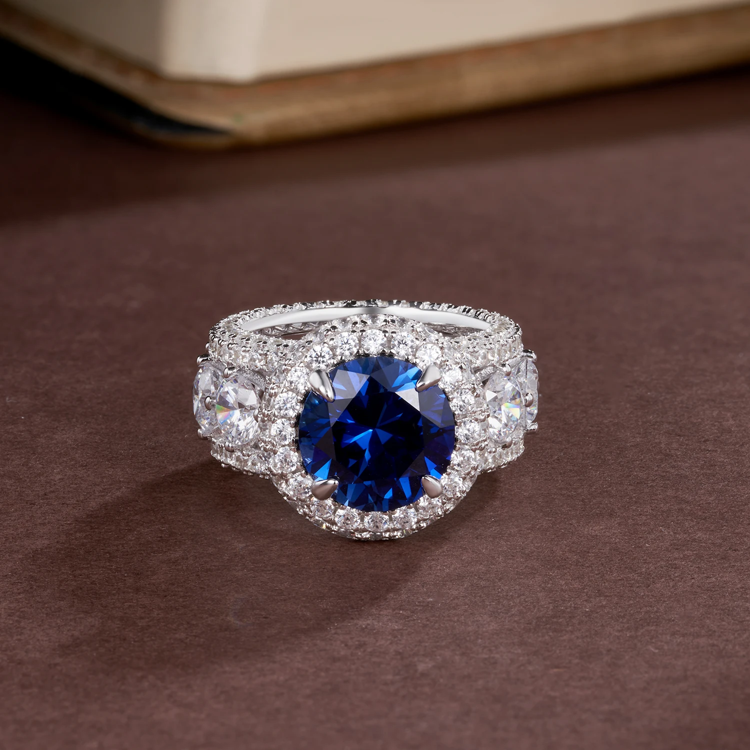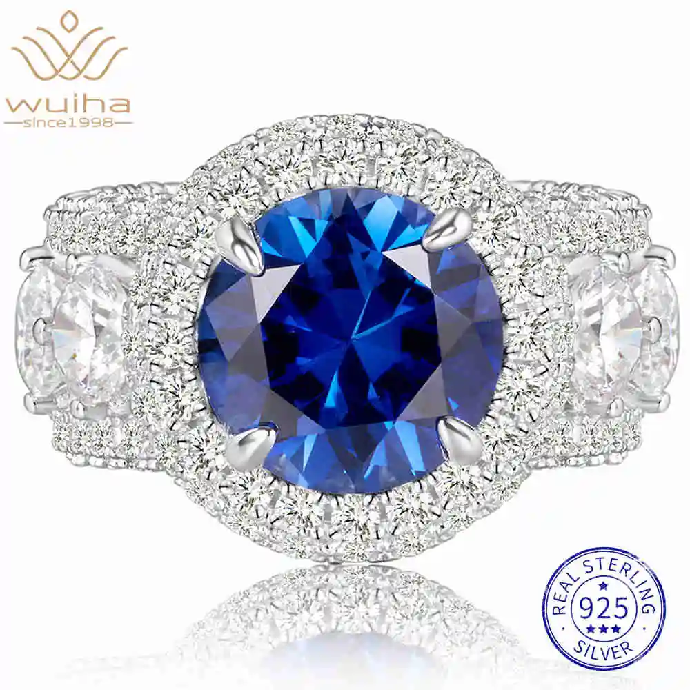 WUIHA Vintage 100% 925 Sterling Silver 11 MM Lab Sapphire High Carbon Diamonds Gemstone Wedding Engagement Ring Fine Jewelry